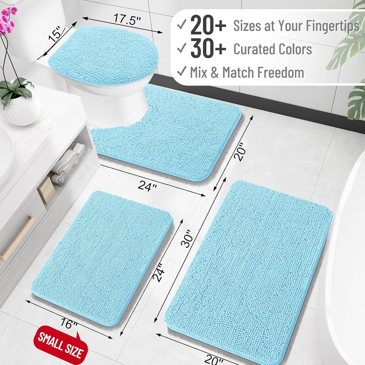 OLANLY Bathroom Rugs 30x20, Extra Soft Absorbent Chenille Bath Rugs, Rubber Backing Quick Dry, Machine Washable Bath Mats for Bathroom Floor, Tub and Shower, Home Decor Accessories, Sky Blue