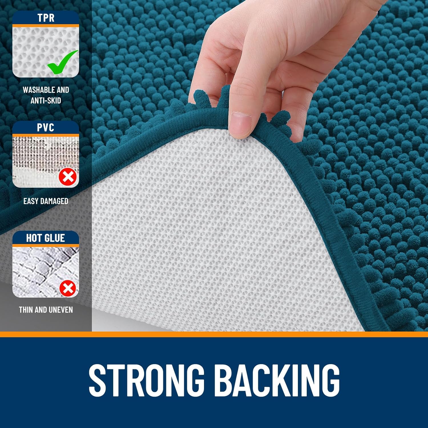 - Long-lasting and Sturdy - Our bath mat features a textured rubber backing for stability, surpassing the durability of other brands using PVC or hot glue. Unlike traditional materials, our TP Rubber Backing is engineered to withstand repeated washes without compromising its integrity. WARNING: Water under the bathroom rug can cause it to slip. Keep bottom of the bath rug dry!