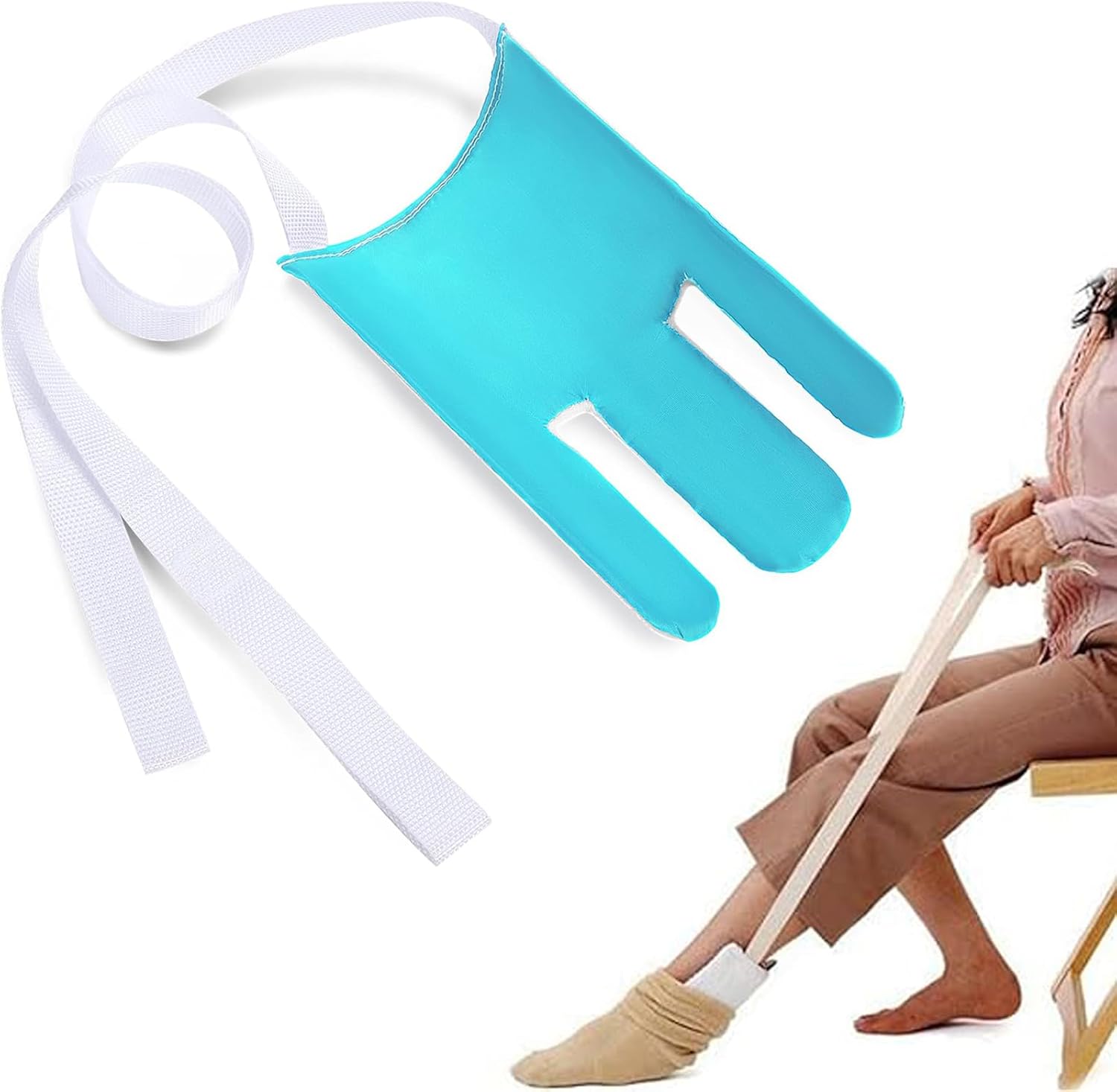 - EASILY PUT ON SOCKS: Easily put on your own socks or hosiery with the sock assist device. Perfect for those recovering from surgery, injury or those with limited mobility. Latex-free plastic shell contours to slide over the foot and heel, pulling up the sock with ease.