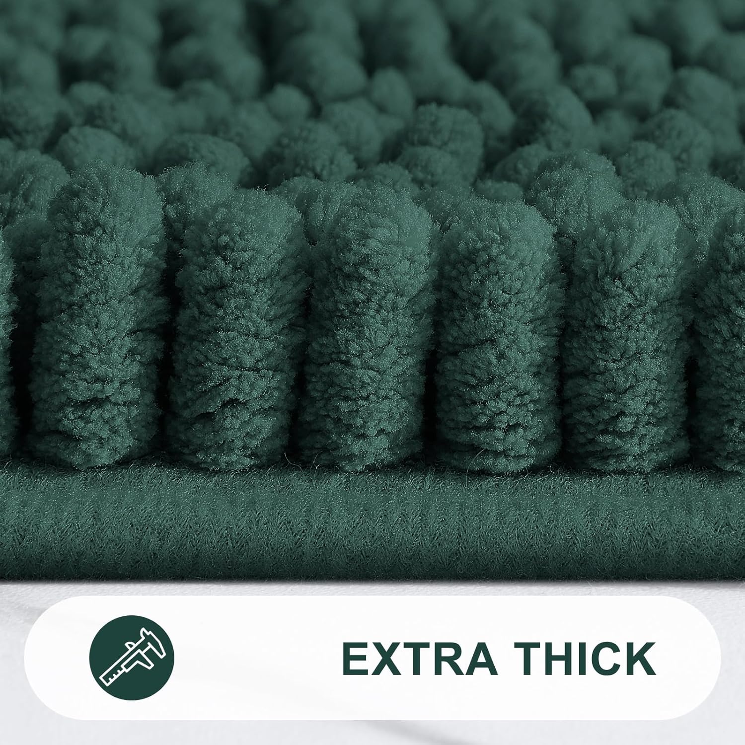Grandaily Chenille Striped Bathroom Rugs 30x20, Extra Thick and Absorbent Bath Mats, Non-Slip Soft Plush Shaggy Shower Carpet, Machine Wash Dry, Bath Rug for Bathroom, (Medium, Blackish Green)
