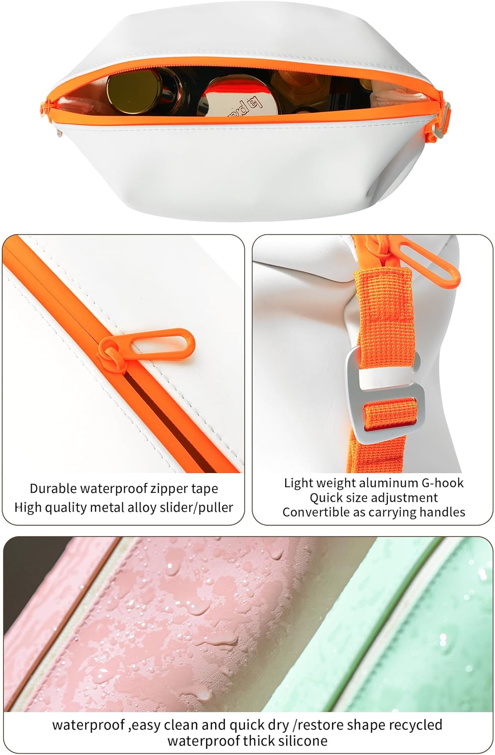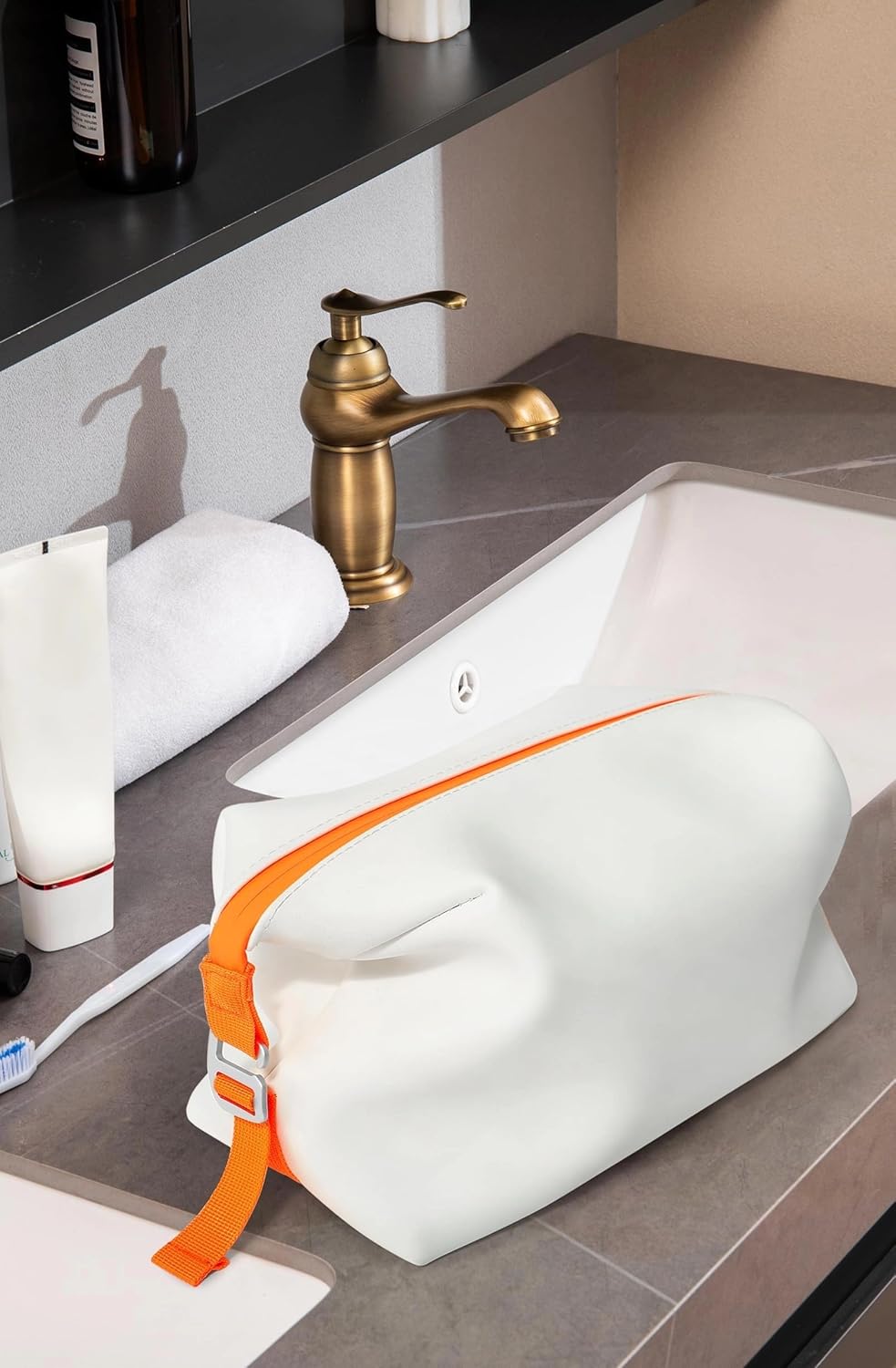 6"x 11" 6L Large Silicone Toiletry Bag,Waterproof Leakproof Foldable Travel Organizer,Dopp Kit Alternative for Men & Women,White