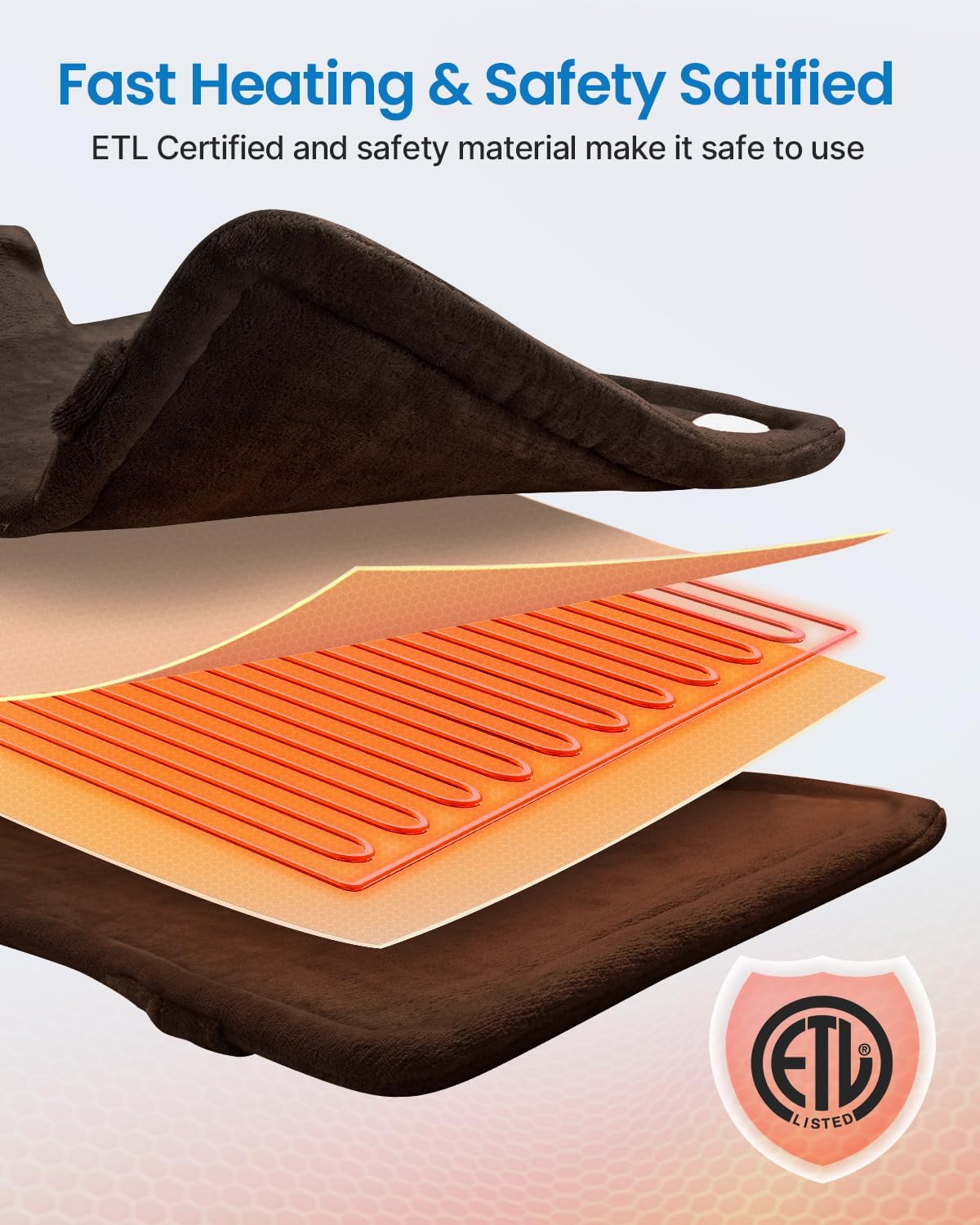 RENPHO Large Full Body Heating Pad, Christmas Gifts for Men Women, Electric Heat Pad for Neck and Shoulders and Back Pain Relief, Hsa Store Eligible Items, FSA Eligible, ETL Certified, 24"x37", Brown