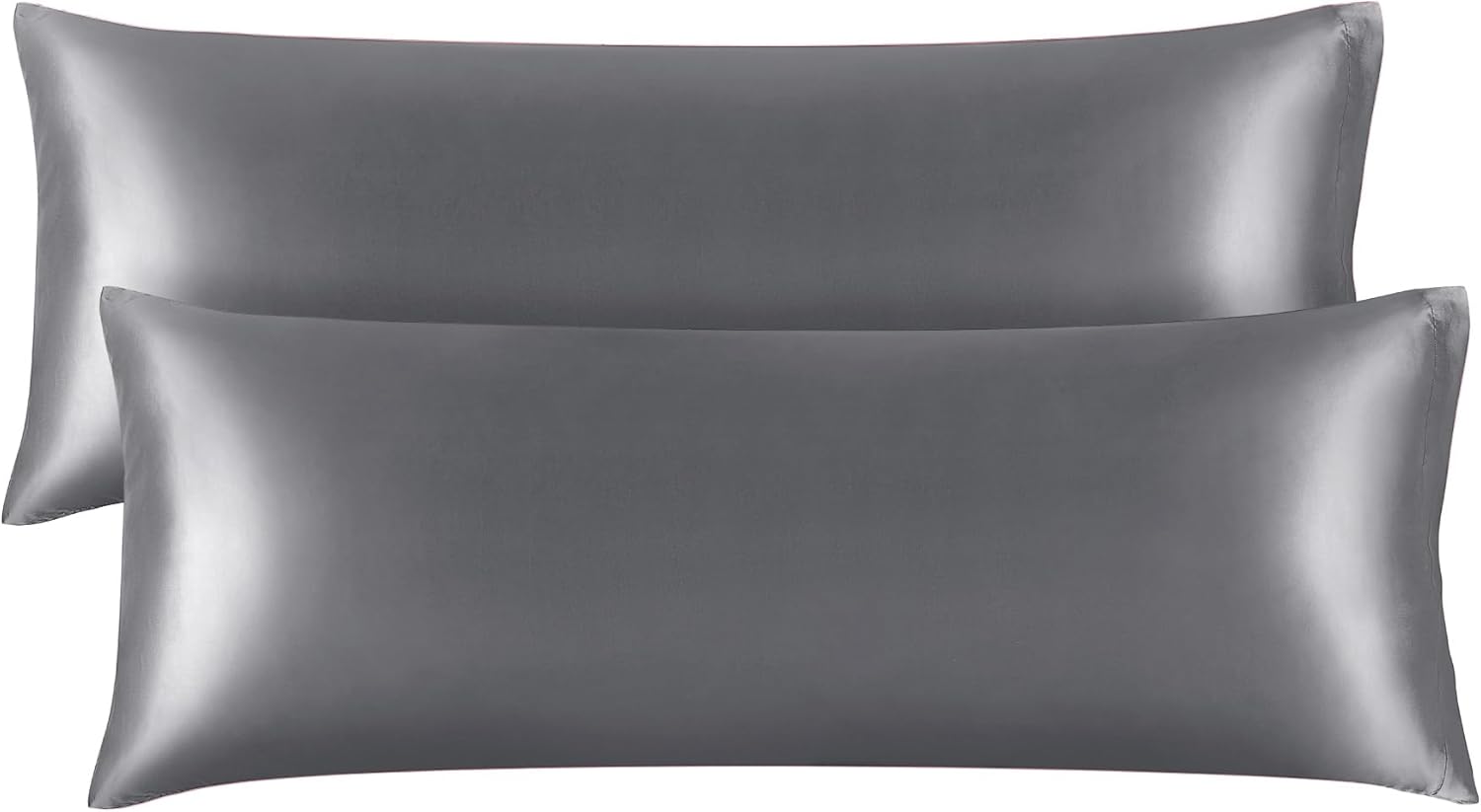 BEDELITE Satin Body Pillow Cover 2 Pack, Super Soft and Cooling Body Pillow Pillowcase for Hair and Skin, Breathable Silky Full Long Pillowcase Cover(20"x54", Dark Grey)