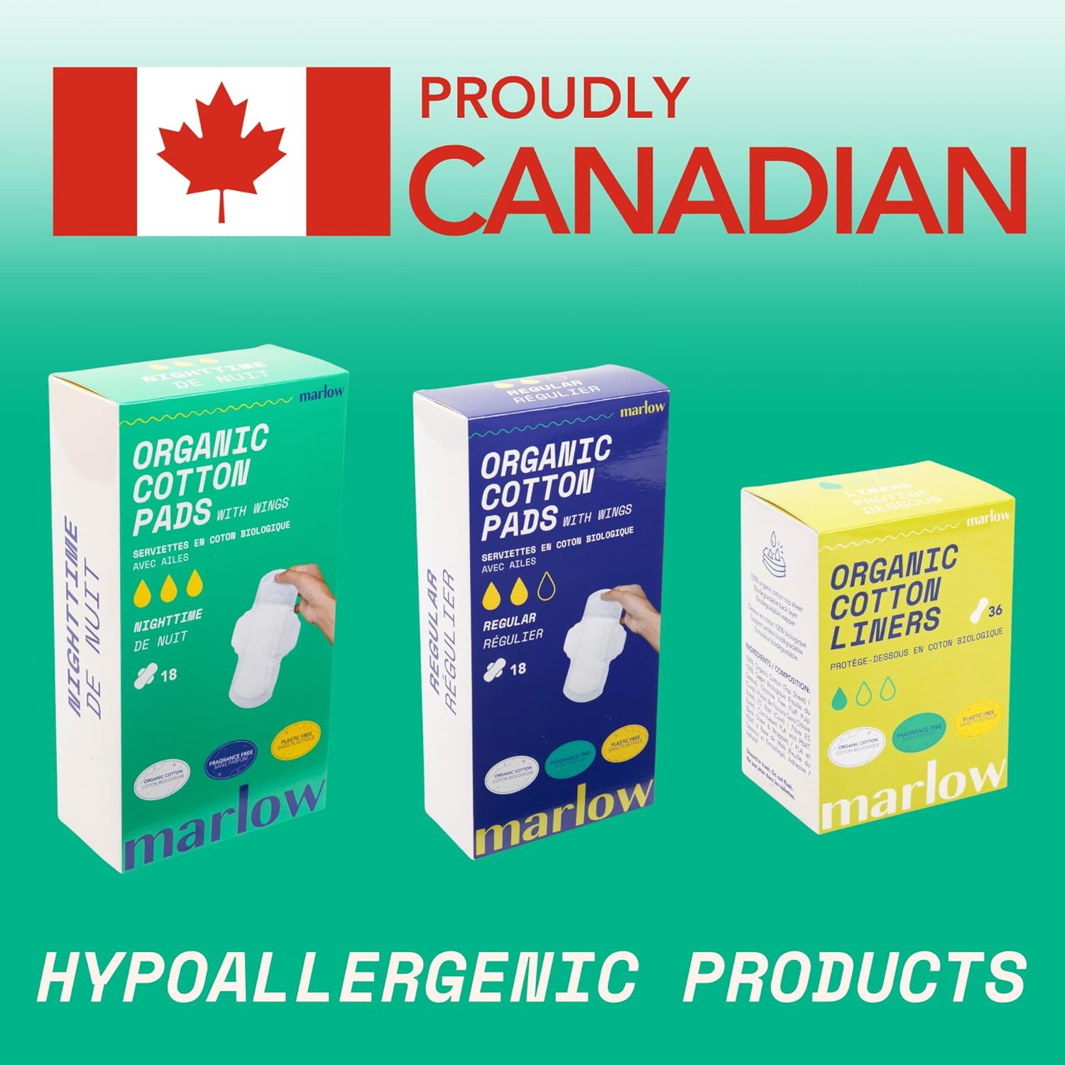 - NON-PLASTIC LINERS & WRAPPERS- Marlow pads contain zero plastic and the compostable wrappers can be broken down and decomposed naturally.