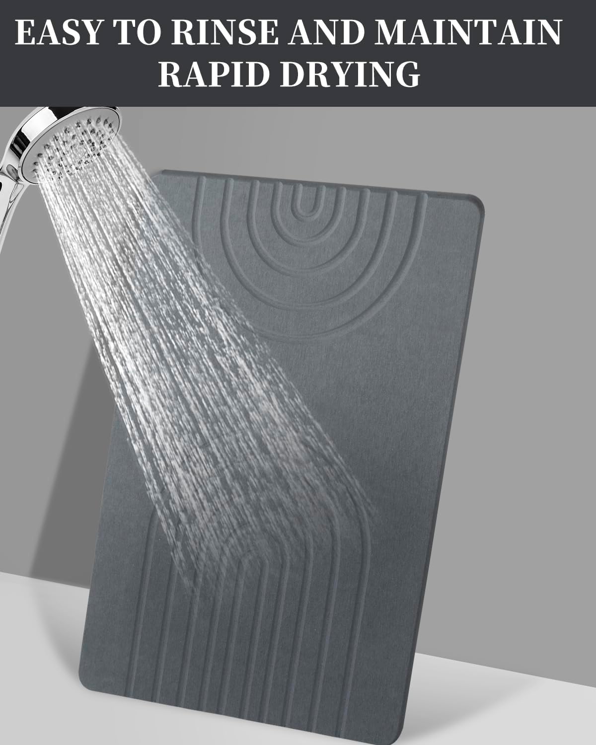 Stone Bath Mat 24"x16" - Diatomaceous Earth Shower Mat, Quick Dry, Anti-Slip, Modern Design with Bonus Non-Slip Pad - Perfect for Home Safety and Style,Gray,Straight