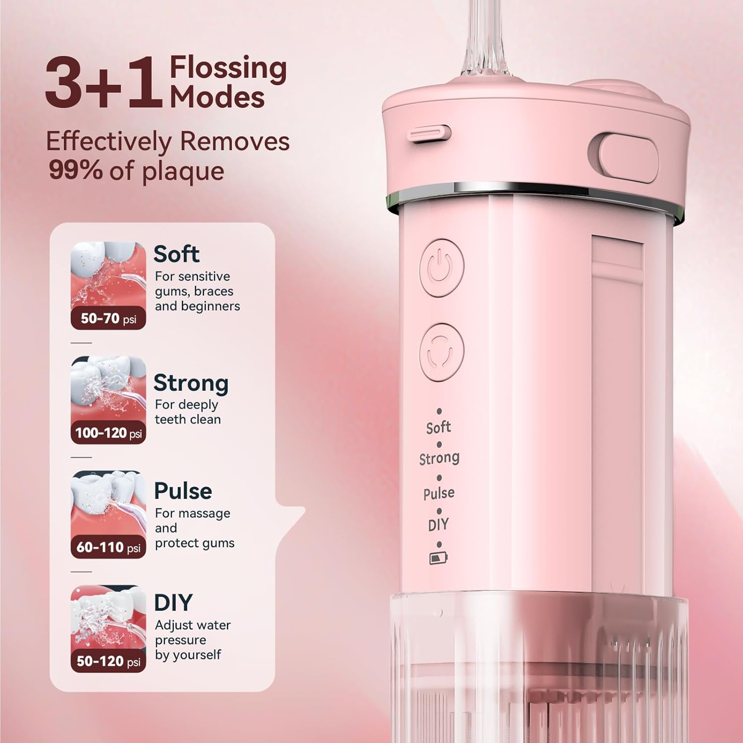- ă4 đđĽđđđ§đ˘đ§đ đđ¨đđđŹ & đđđđŠ đđĽđđđ§& đđđđ đđđđđŤđŠđŤđ¨đ¨đ đđđŹđ˘đ đ§ăThe Water Flosser has 3 cleaning modes and 1 DIY modes, 50-130 PSI, including a 0.65mm water flow that's perfectly targeted for gentle deep-cleaning in every corner of your mouth, even for those with braces or implants, and those with bridges, crowns, and veneers. IPX7 waterproof ensures the product is safe to use and prevents leaks