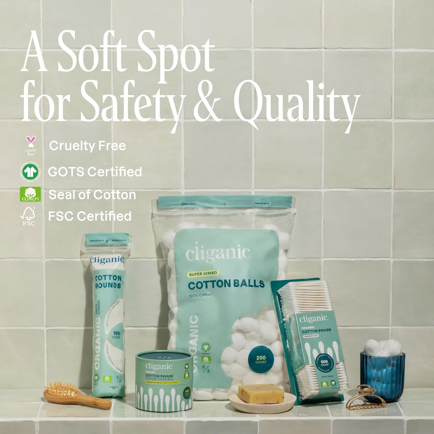Cliganic Organic Bamboo Cotton Swabs, 200 Count - 100% Pure Natural Cotton, Chlorine-Free Hypoallergenic, Soft, Gentle & Absorbent Buds