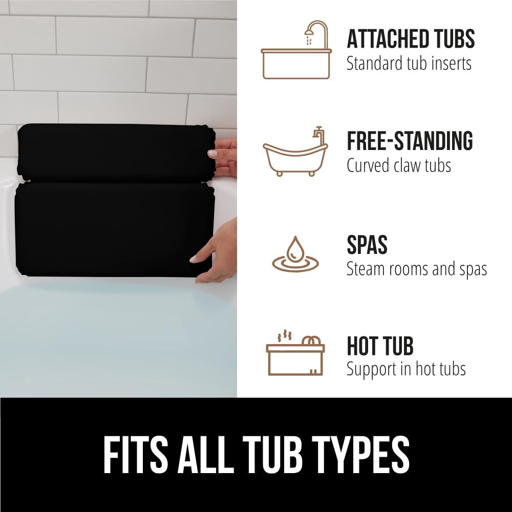 GORILLA GRIP Bath Pillow for Tub, Improved Suction Cups, Luxury Bathtub Pillows, Headrest for Neck and Back Support, Relaxing Home Spa, Hot Tubs and Bathroom Essentials, Gifts for Women, 2 Panel Black