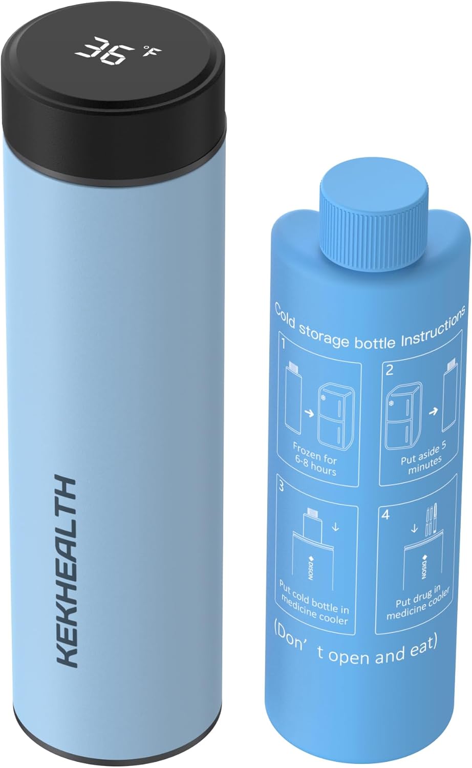 - REAL-TIME TEMPERATURE MONITORING: Stay informed with a bright digital display integrated into the bottle cap, simplifies temperature monitoring and showing you the exact temperature of the insulin at all times, allowing you to always know the temperature of the insulin storage without opening the cooler for enjoy medicine travel