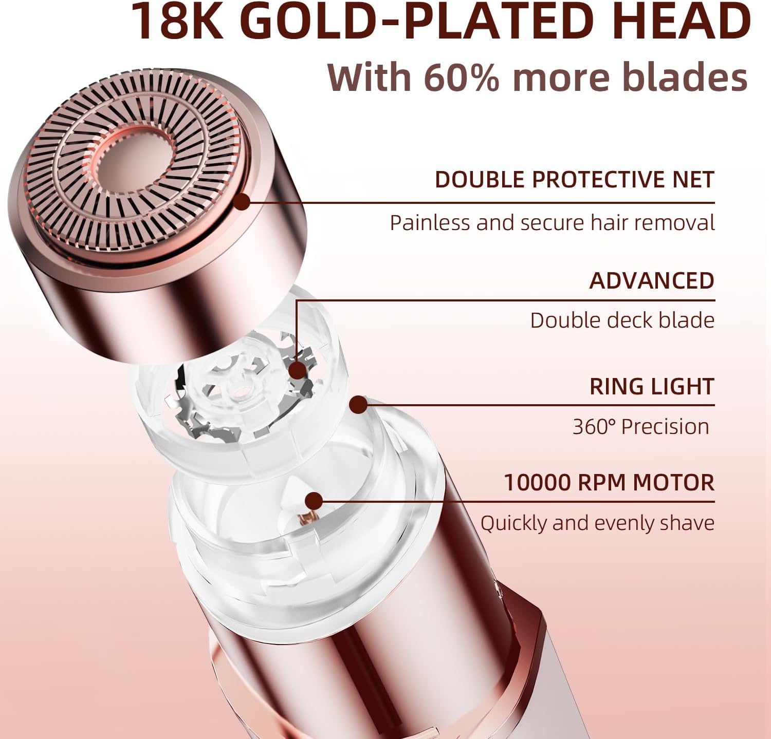 Facial Hair Removal for Women, Portable Lady Shaver, Rechargeable Painless Hair Remover for Face, Upper Lips, Chin, Peach Fuzz