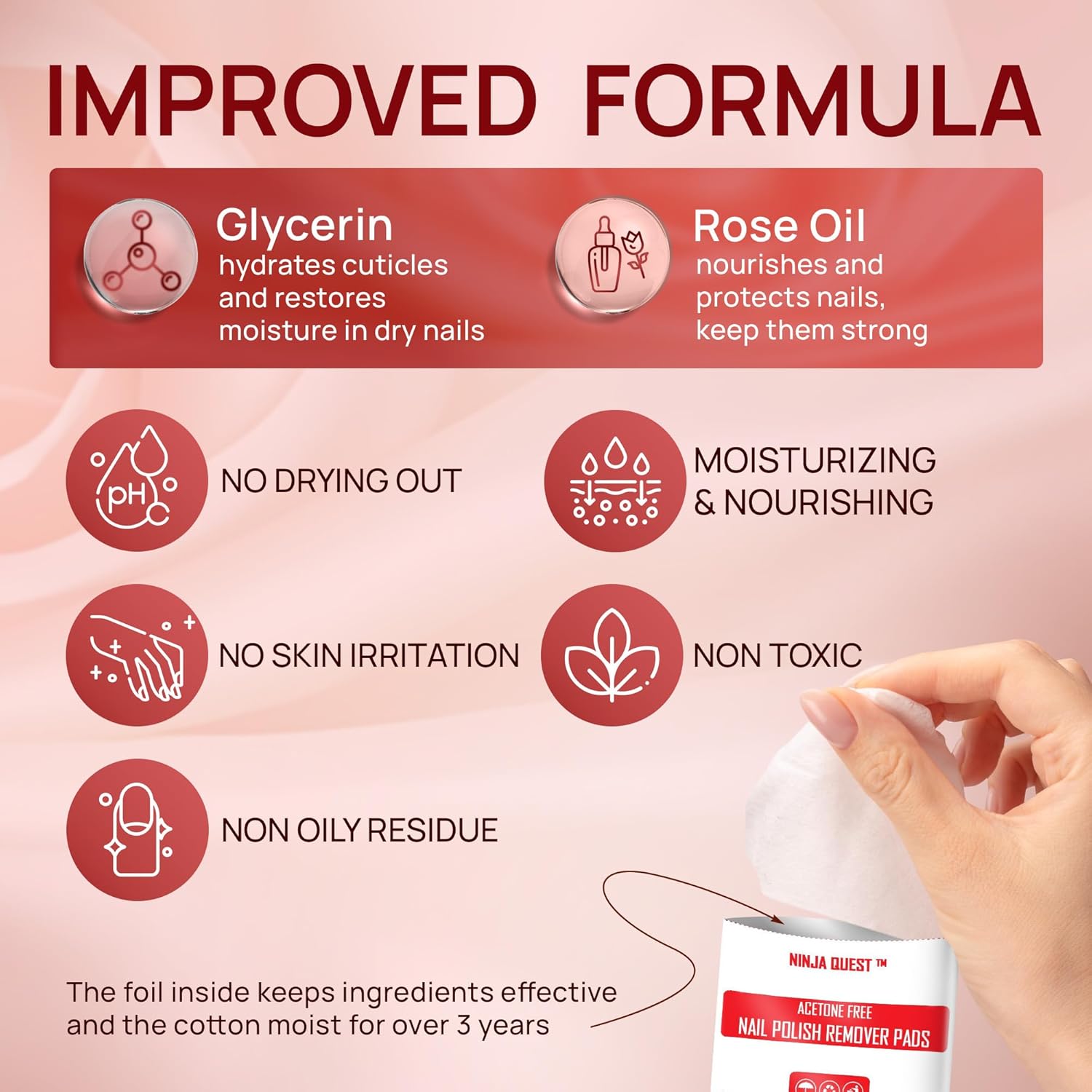 - Moisturizing & Nourishing Formula: Infused with natural ingredients like rose oil and glycerin (more effective than aloe vera and panthenol), these pads not only remove gel polish, but also nourish and hydrate nails, cuticles