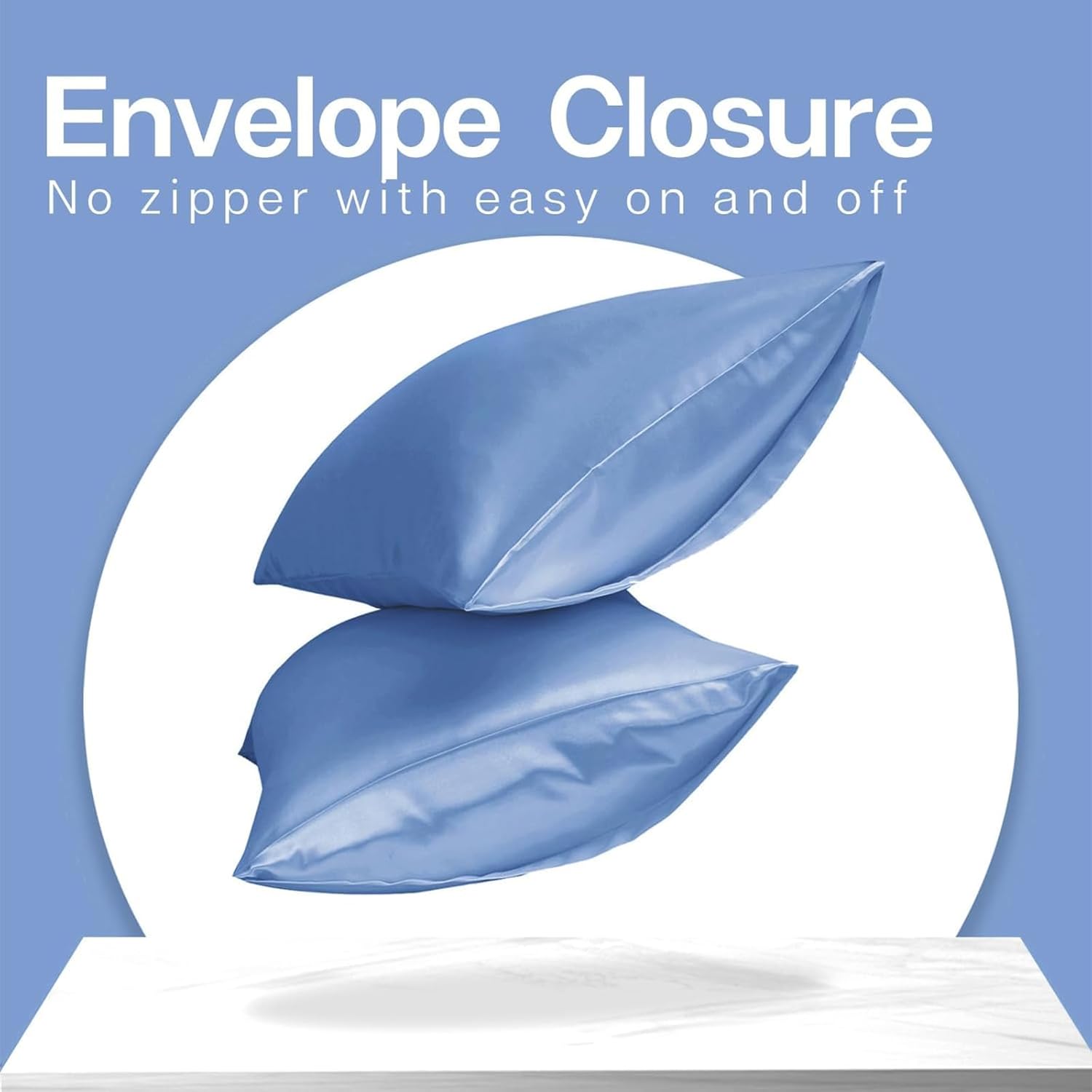 MR&HM Satin Pillowcase for Hair and Skin, Silk Satin Pillowcase 2 Pack, Queen Size Pillow Cases Set of 2, Silky Pillow Cover with Envelope Closure (20x30, Sky Blue)