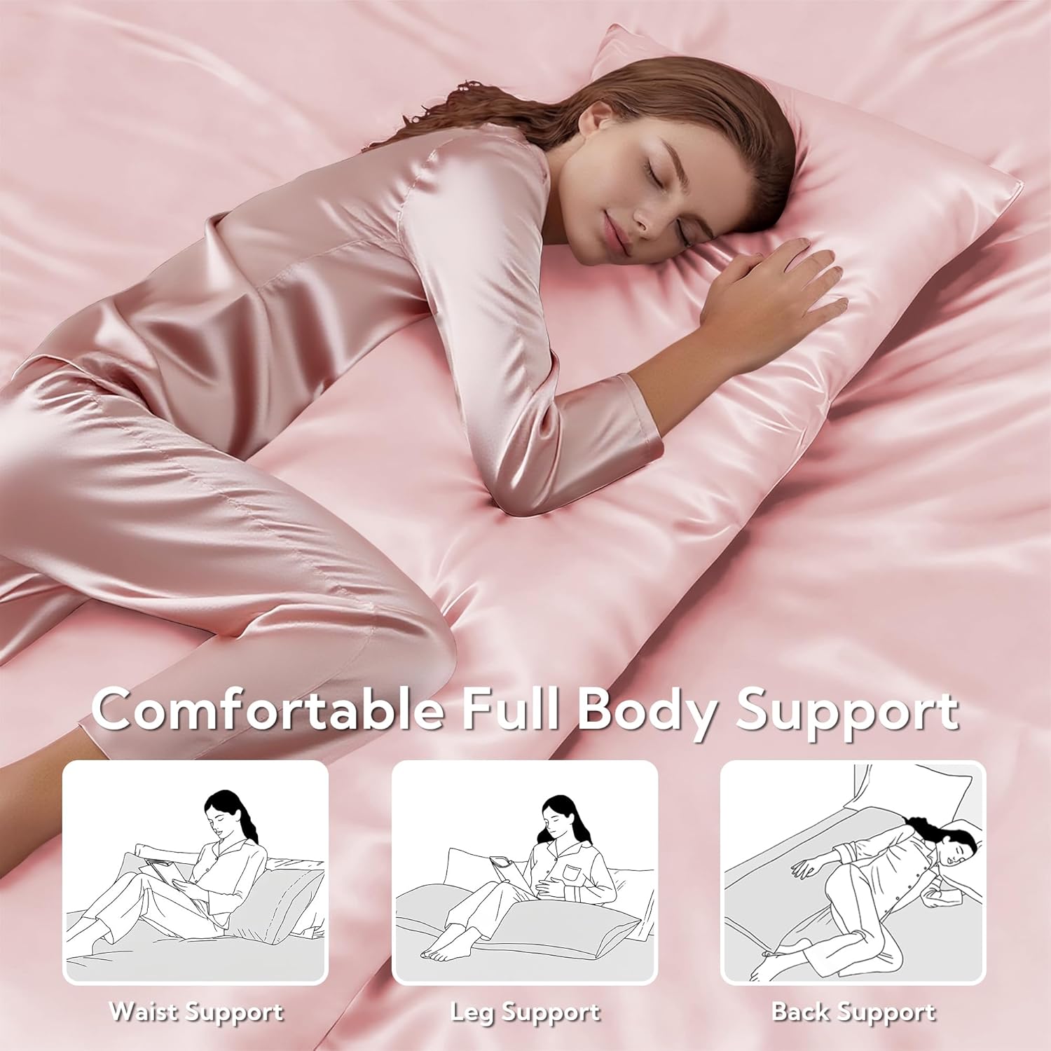 MR&HM Satin Body Pillow Cover, Soft and Breathable Body Pillow Case with Envelope Closure, Cooling and Silky Long Pillowcase for Hair and Skin,Grey (20x54, Light Pink)