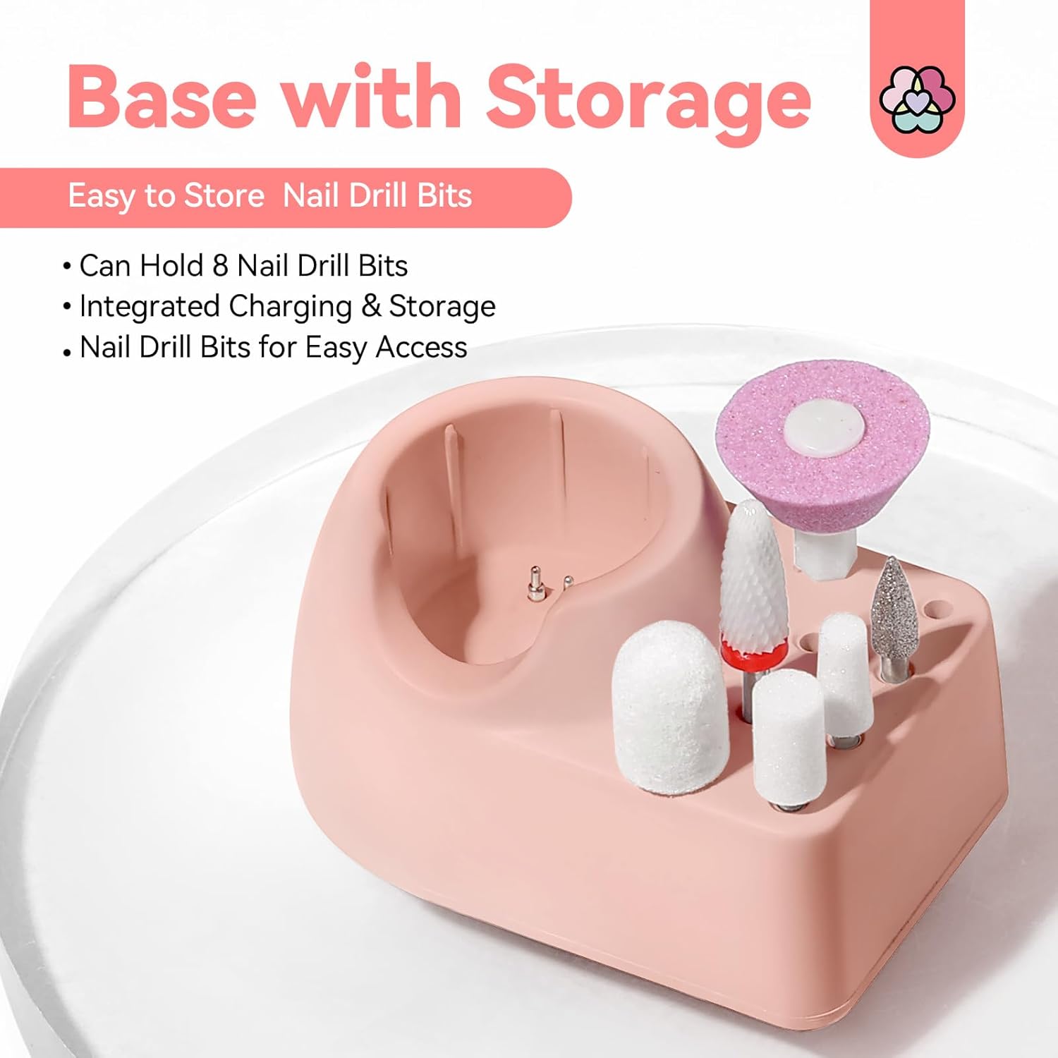 SAVILAND Professional Electric Nail Drill: 20000RPM Cordless Efile Nail Drill Pink Protable Nail File with Base for Nail Grinding & Polishing Gel Acrylic Nails Faster Remover Salon at Home
