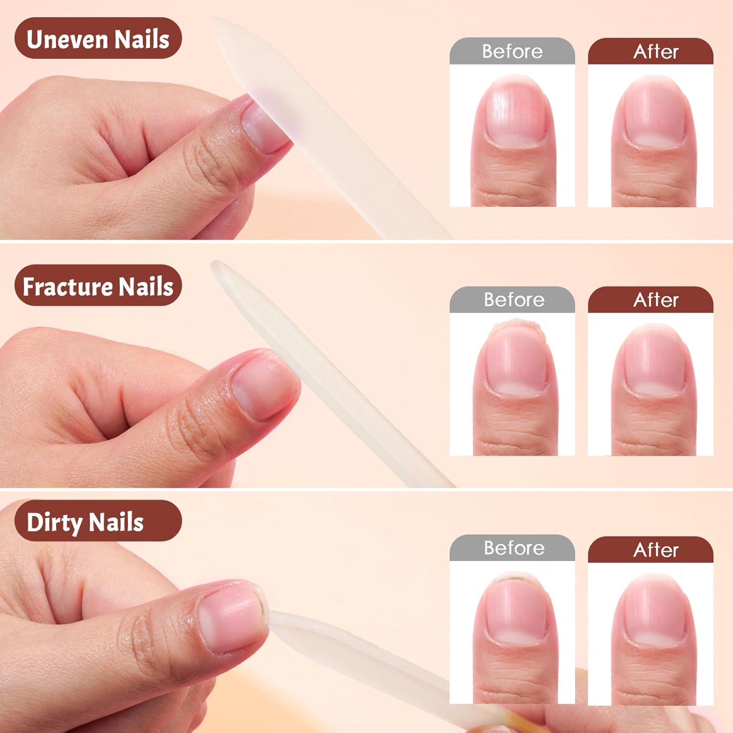 - EASY TO CLEAN & REUSABLET: Glass fingernail file with case for natural nail are hygienic, easy to clean and recyclable. They will not corrode, rust, rot or become unsanitary like other nail files. To clean, simply rinse the abrasive surface under tap water and finally dry with a soft towel or paper towel. Its durable glass material ensures long-lasting use and a salon-quality finish every time.