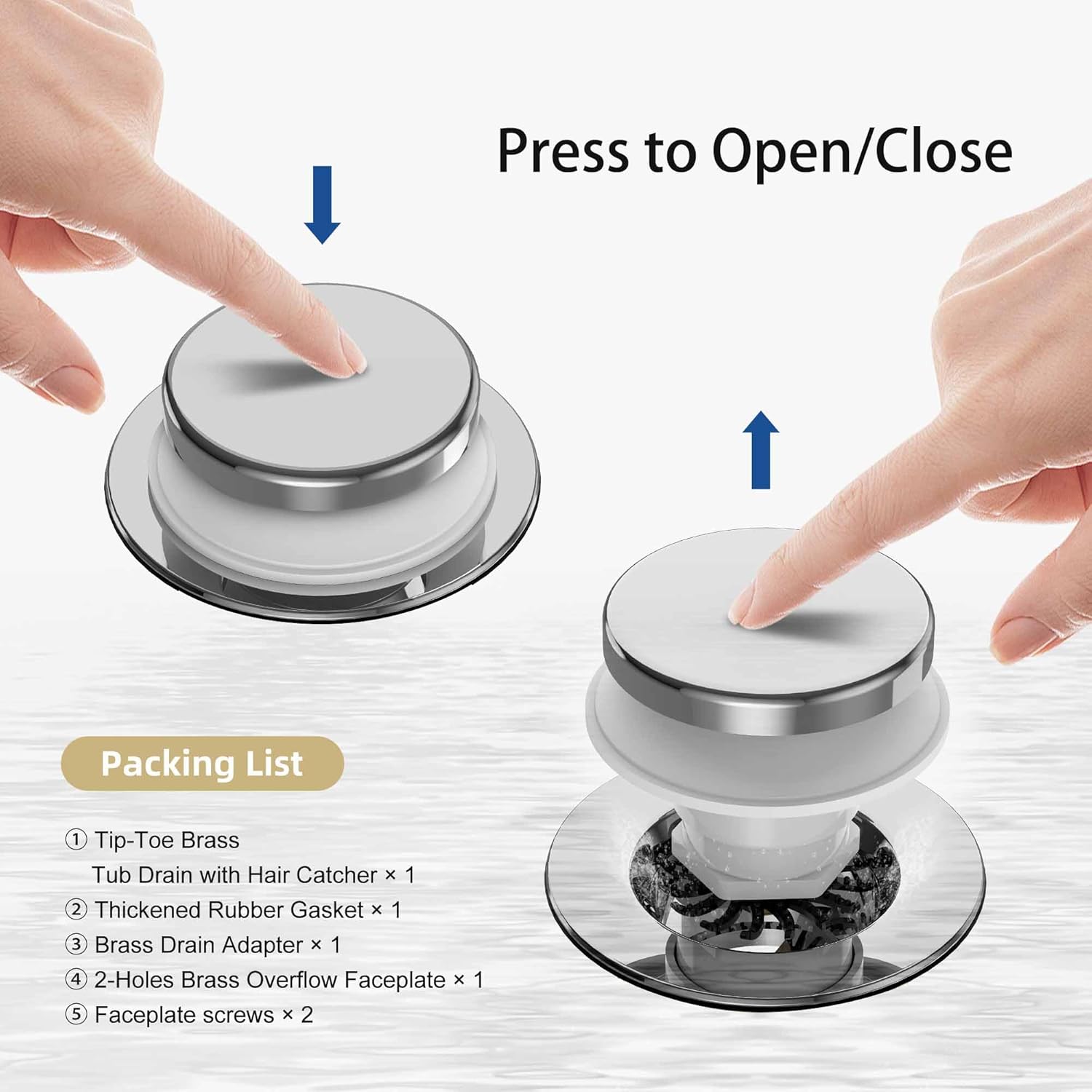 - Beautiful Finish: Anti-fingerprint chrome plated tip-toe bathtub drain matches your faucet and bathroom decor; 5-layer electroplating protects against rust, peeling, and corrosion; maintains appearance over time