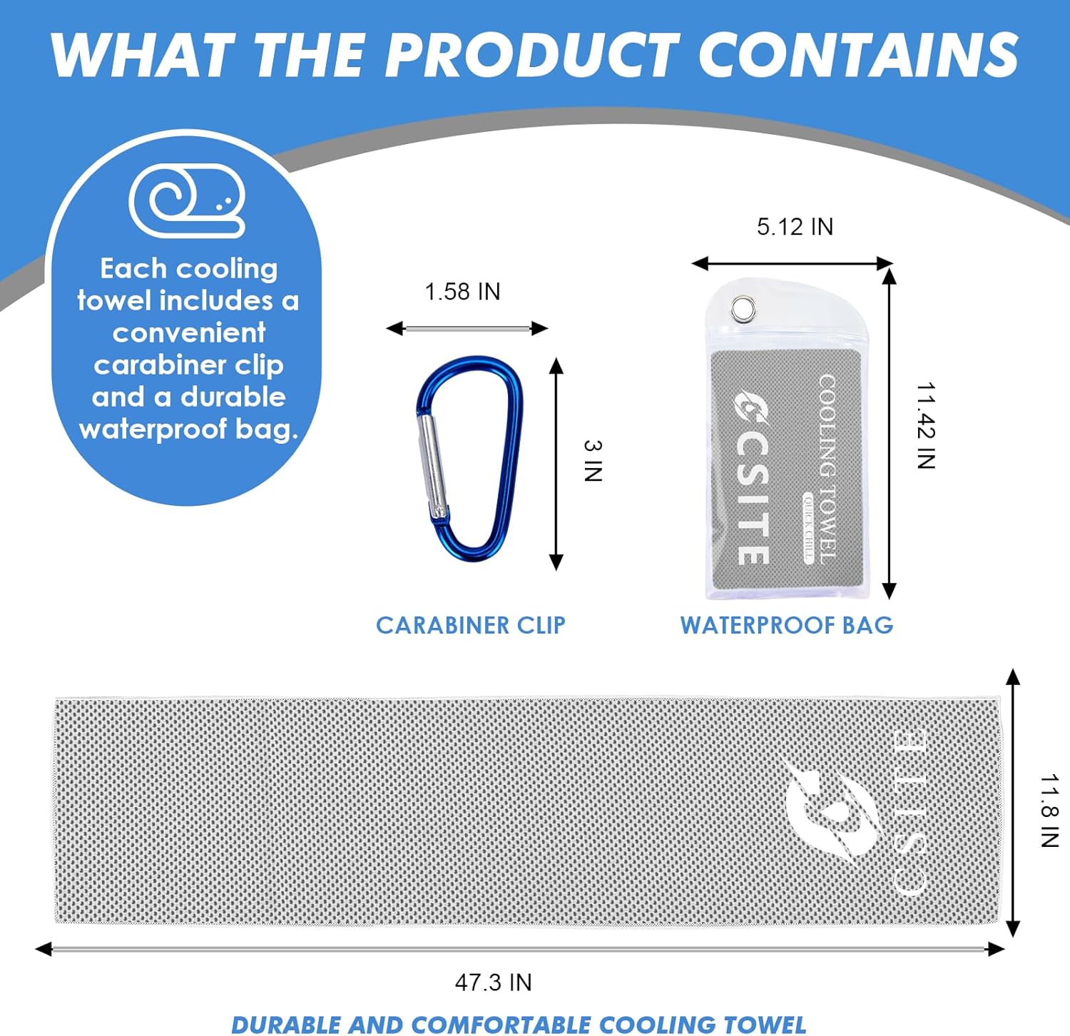 - DESIGN FEATURES : Measuring "47x12", the cooling towel offers ample coverage; Expanding the size brings better cooling effects; Crafted from high-quality materials, these towels are durable and longevity, providing a dependable, cost-effective cooling solution for the long term; Please feel free to contact us for any issues