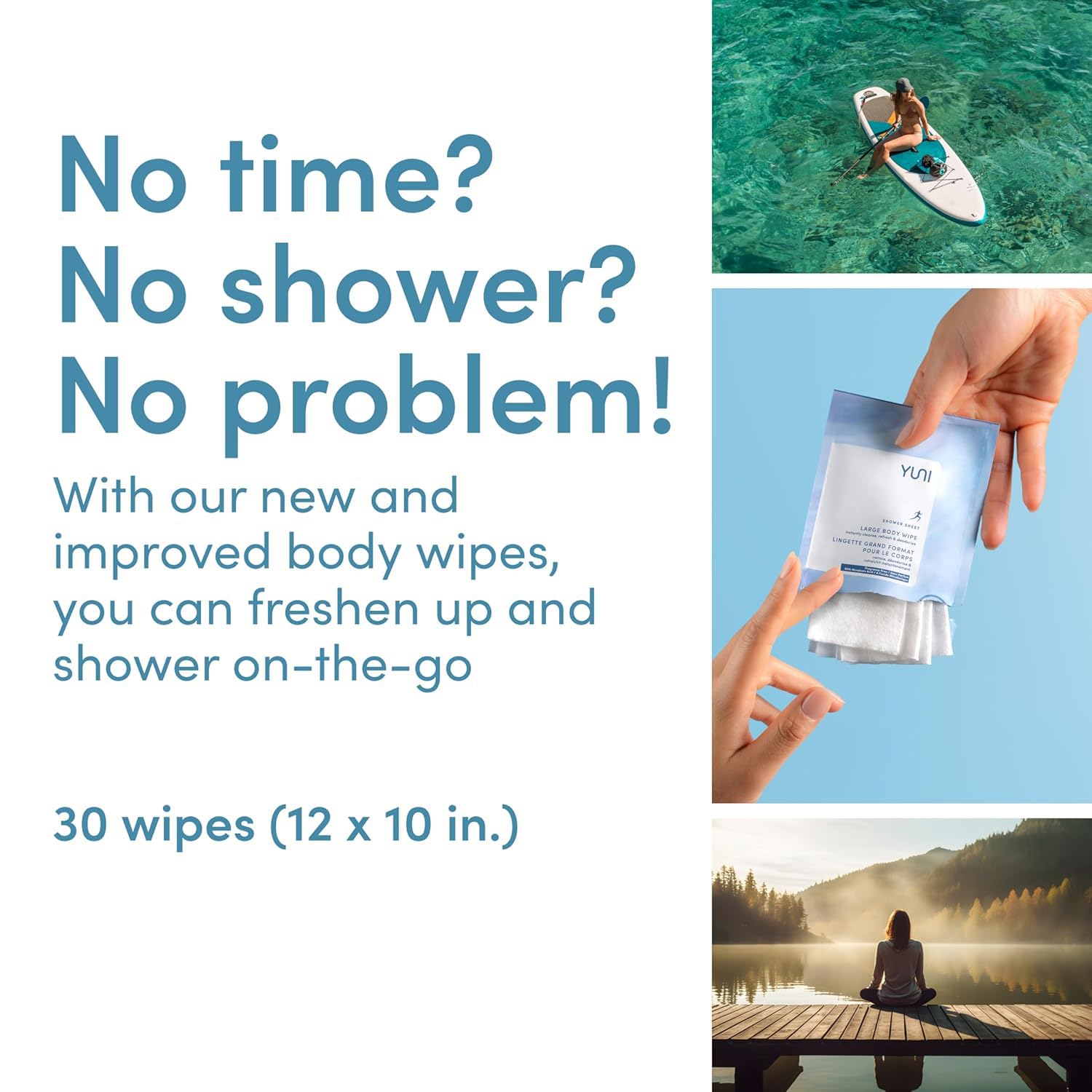YUNI Beauty Large Body Wipes (Unscented, 12 Count) Super Soft Moist Showerless that Cleanse & Deodorize - On-the-Go Waterless Body Cleanser - Biodegradable Individually Wrapped Wipes for Travel
