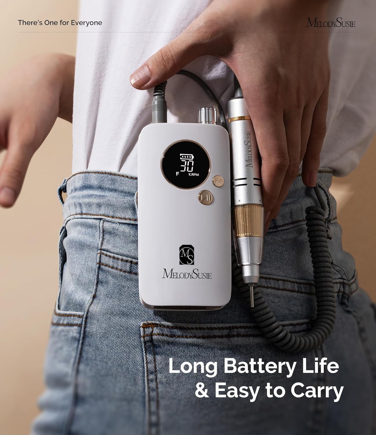 MelodySusie Portable Nail Drill 30000 RPM,SC320F Professional Rechargeable Electric Nail File,Cordless Nail E File for Acrylic Nails Gel Polishing Removing,Efile Nail Kit for Manicure Salon Home,White