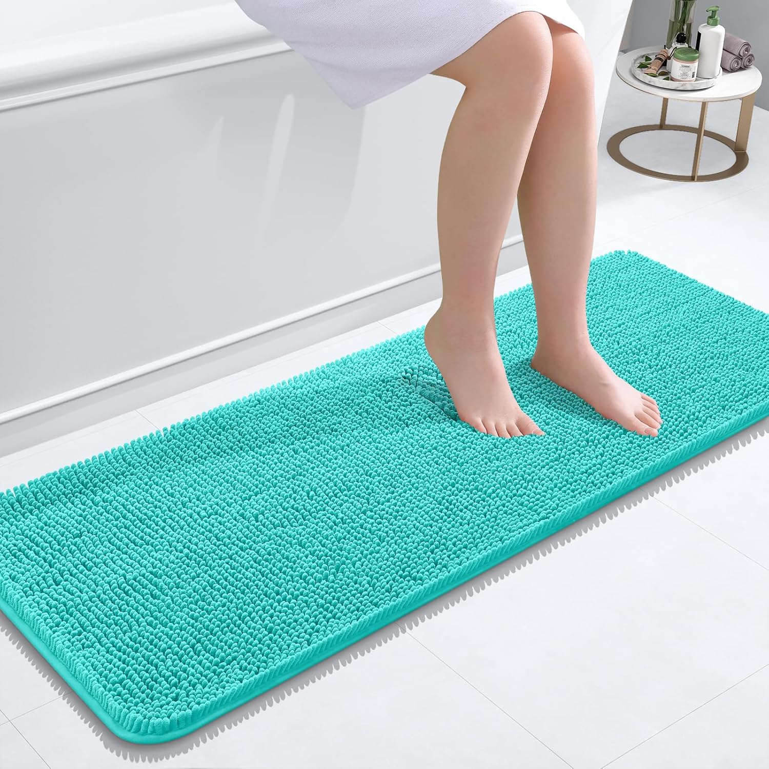 OLANLY Bathroom Rugs 47x17, Extra Soft Absorbent Chenille Bath Rugs, Rubber Backing Quick Dry, Machine Washable Bath Mats for Bathroom Floor, Tub and Shower, Home Decor Accessories, Teal