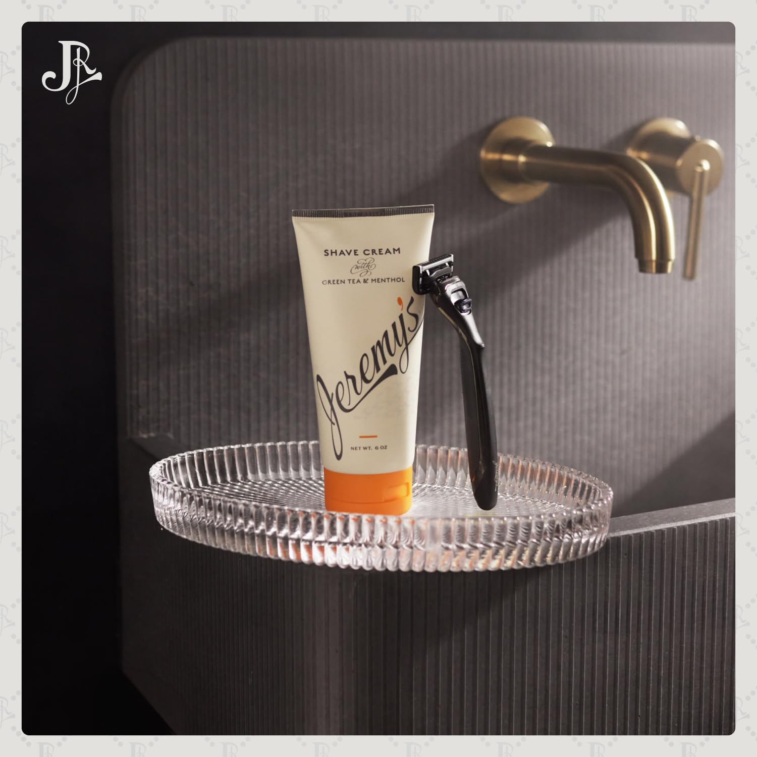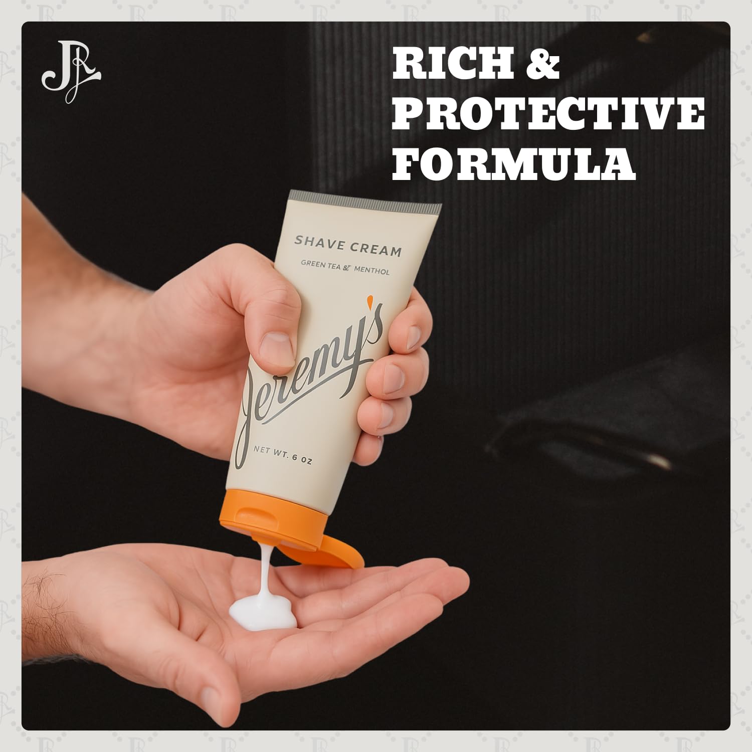 Jeremy’s Razors Shaving Cream Mens with Green Tea + Menthol, 6 Fl Oz, Off White