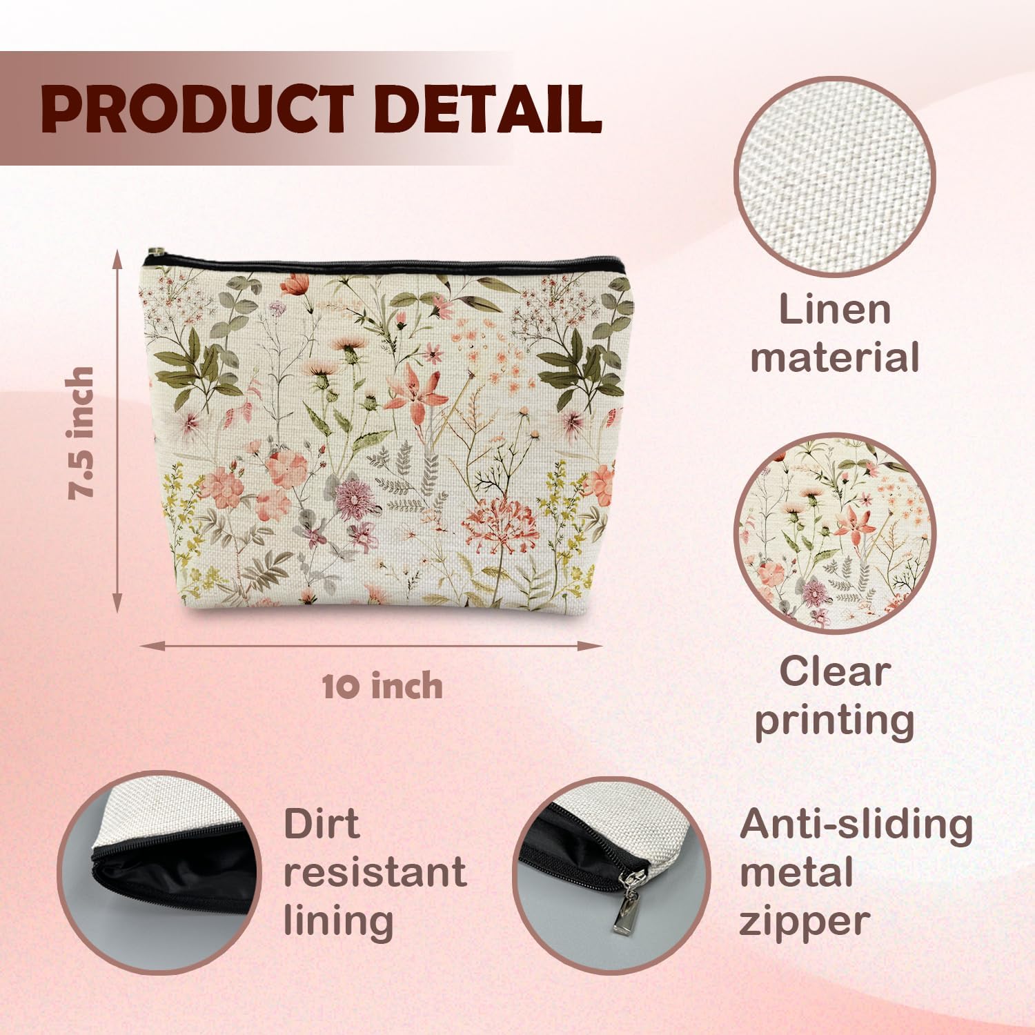 - Compact Size:Measuring 7.5 x 10 inches, this makeup bag is perfectly sized to conveniently carry all your makeup essentials, including nail clippers and tweezers.