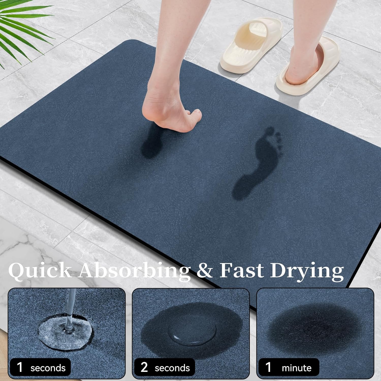 Bath Mat Rugs 24x17 - Diatomaceous Earth Bath Mat Quick Dry Absorbing Bathroom Rugs Rubber Non Slip Thin Bathroom Mat Fit Under Door, Bath Mats for Bathroom Floor,Tub and Shower,Sink, Navy Blue