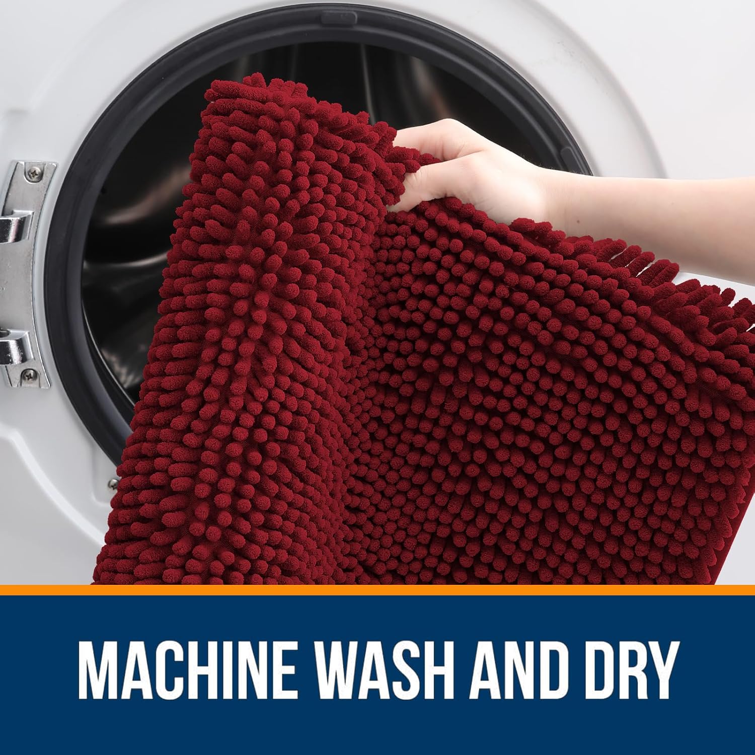 OLANLY Bathroom Rugs 47x20, Extra Soft Absorbent Chenille Bath Rugs, Rubber Backing Quick Dry, Machine Washable Bath Mats for Bathroom Floor, Tub and Shower, Home Decor Accessories, Red