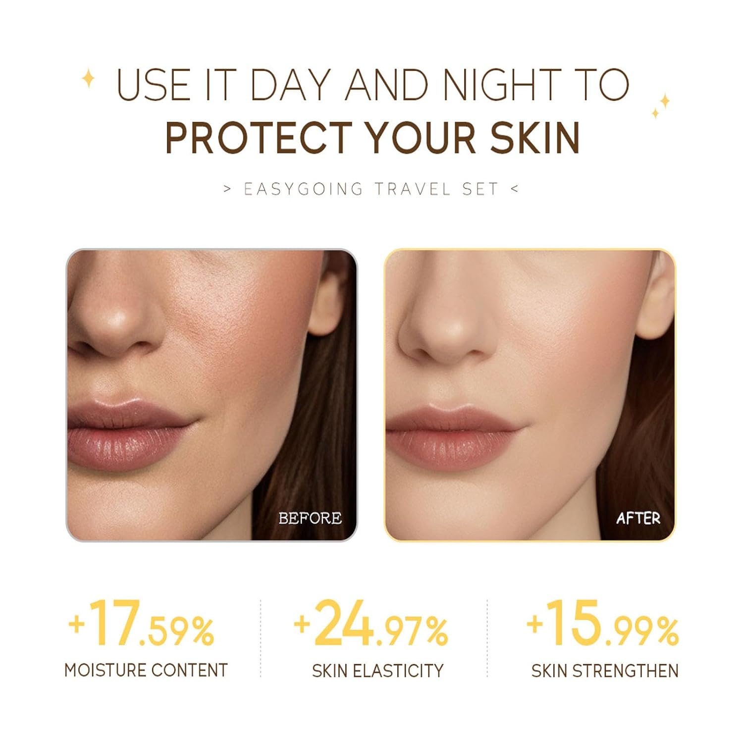 - 【Skin Care Set Travel Kit】This 4-piece travel size face skin care set contains facial cleanser, facial cream, facial serum, sunscreen.Hydrating & moisturizing the skin and travel size suitable for vacation.