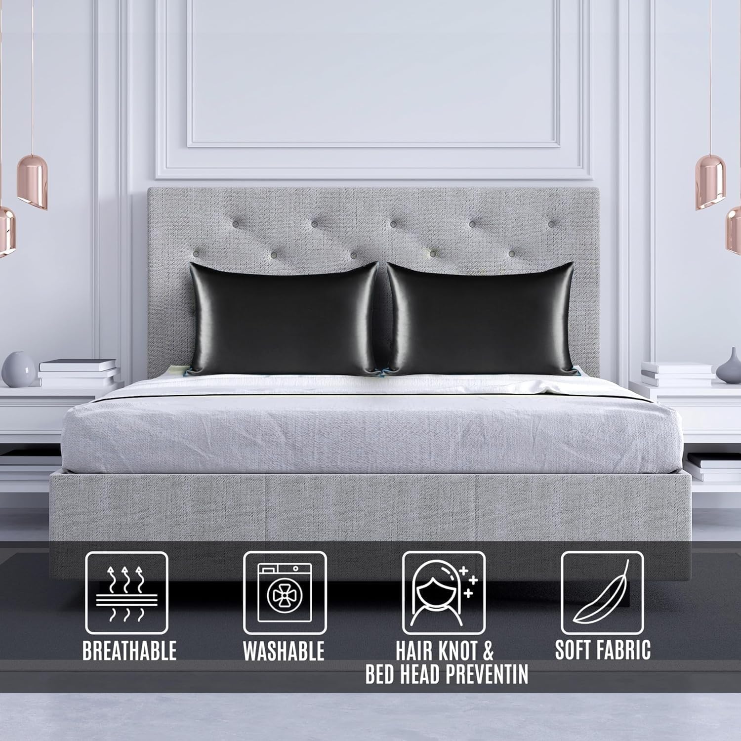 Satin Silk Pillowcase for Hair and Skin, Black Pillow Cases Standard Size Set of 4 Pack Super Soft Pillow Case with Zipper Closure (Black, King (4 Pack))