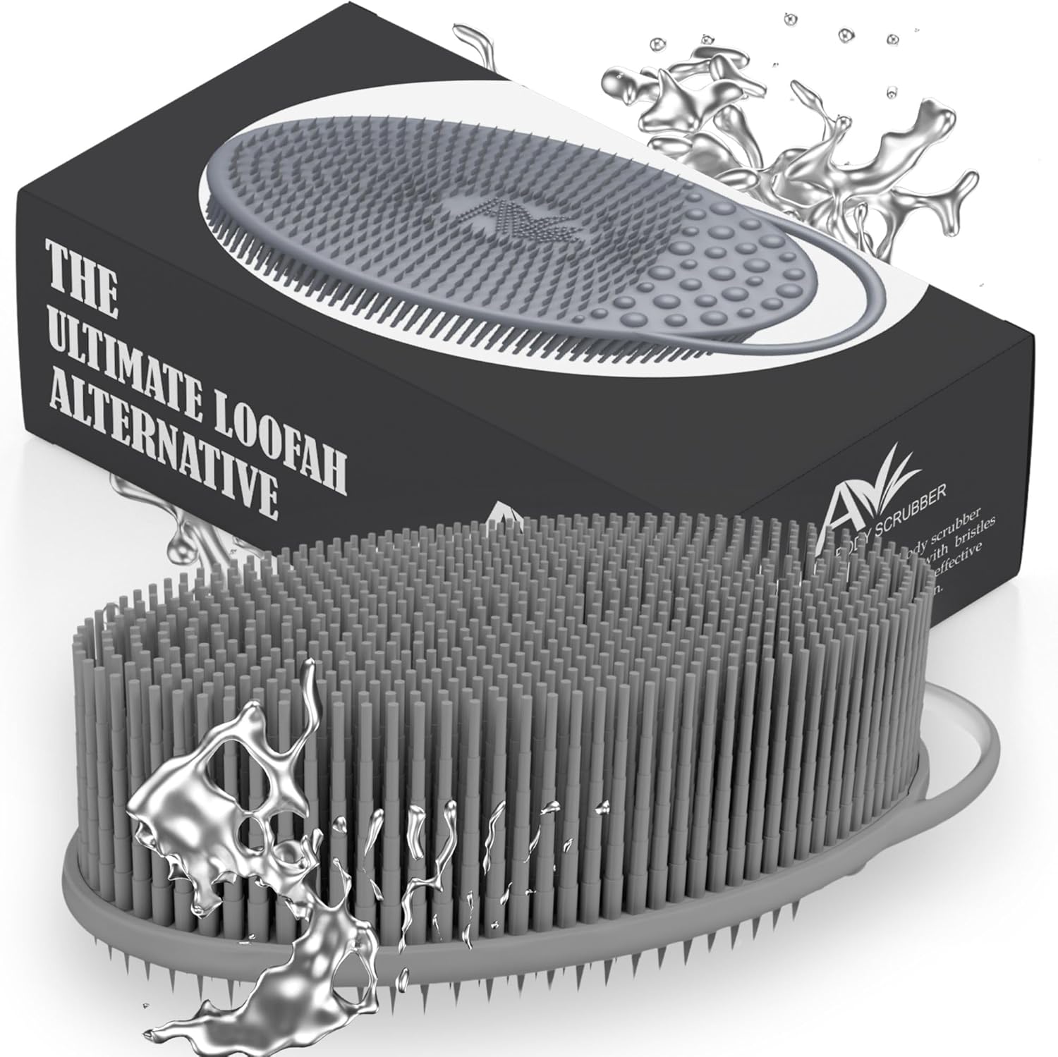 Avilana Silicone Body Scrubber - Food Grade & Lab Tested, Gentle Exfoliating Shower Brush for All Skin Types, Hygienic Quick-Dry Loofah Alternative (Gray, Exfoliate-Silver)