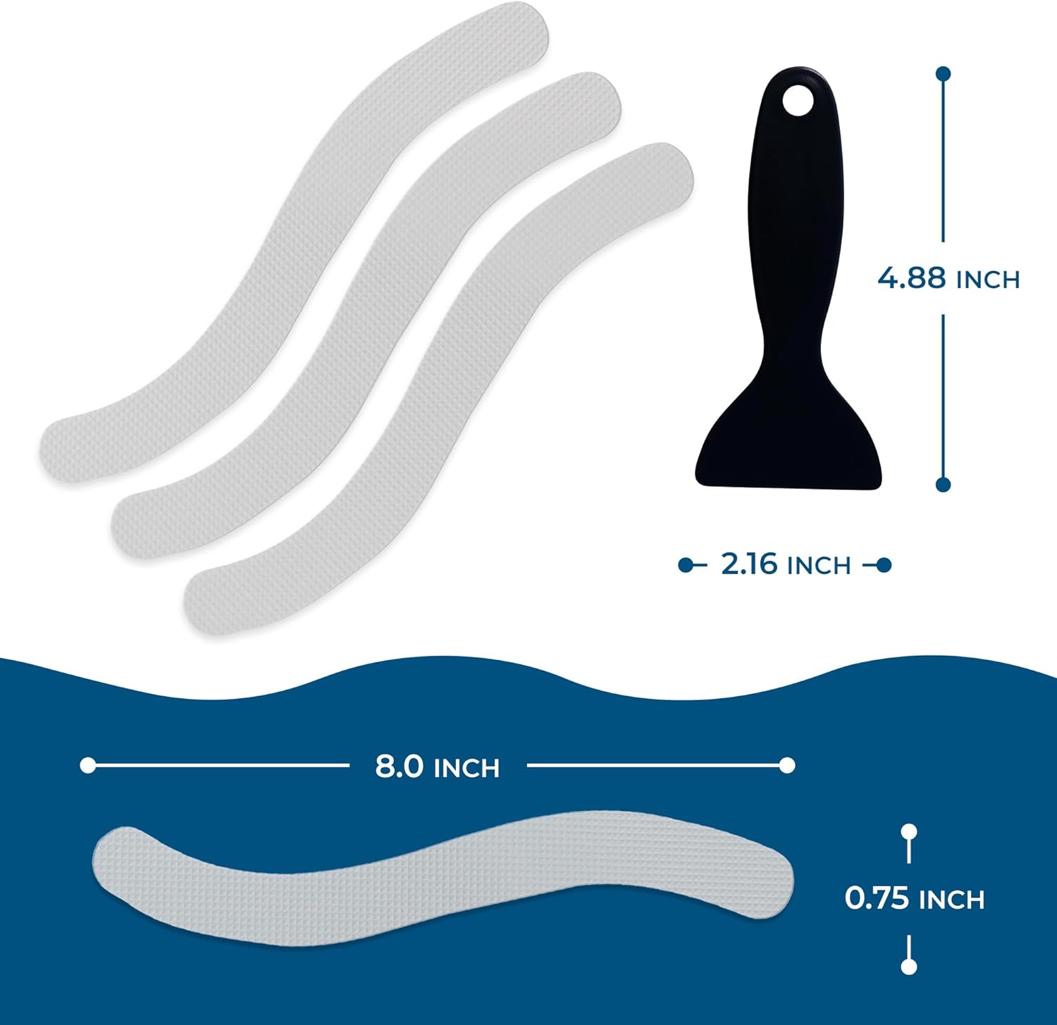 - Versatile & Comprehensive Coverage - With 24 strips (0.75âx8â) included in each package, you can cover most of your bathtub or shower surface, drastically reducing the risk of slips. Additionally, these versatile strips are perfect for use on stairs and boats, providing extra safety wherever needed