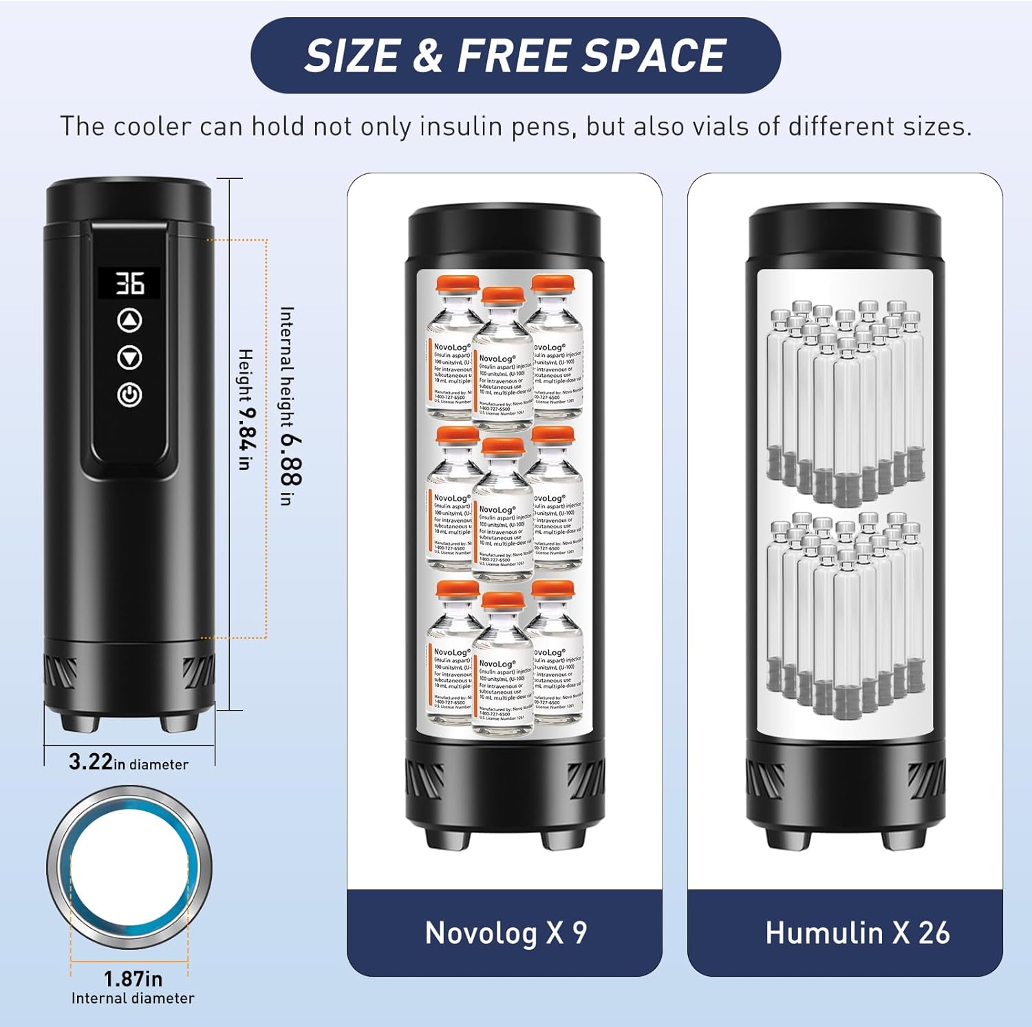 - PRECISE TEMPERATURE CONTROL: The diabetes travel case has a temperature adjustment button and display function, you can freely adjust the temperature you want (Controllable temperature range of 32â-64â), and real-time display the temperature inside the diabetic travel case