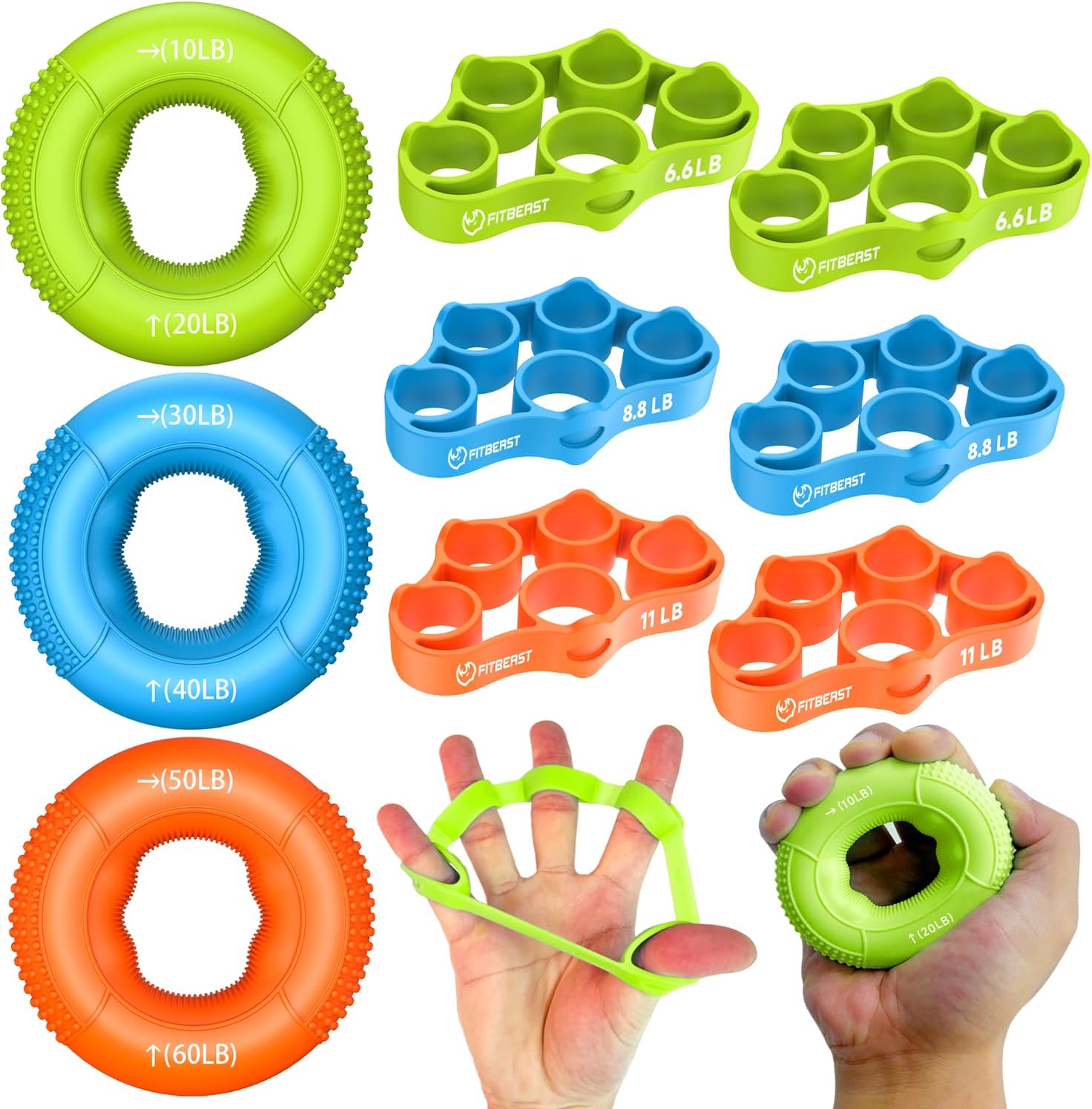 FitBeast Grip Strength Trainer, Finger Exerciser, Forearm Strengthener 9-Piece Kit, Hand Grip Strengthener Targeted Strength, Relief & Recovery