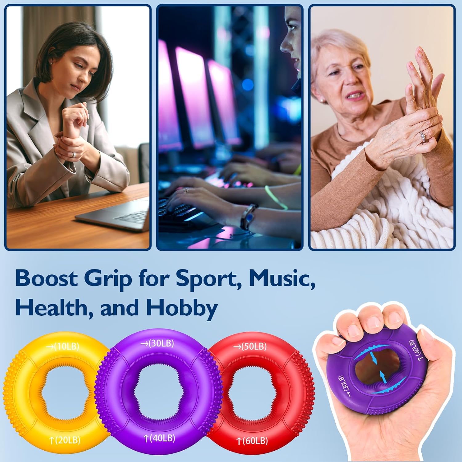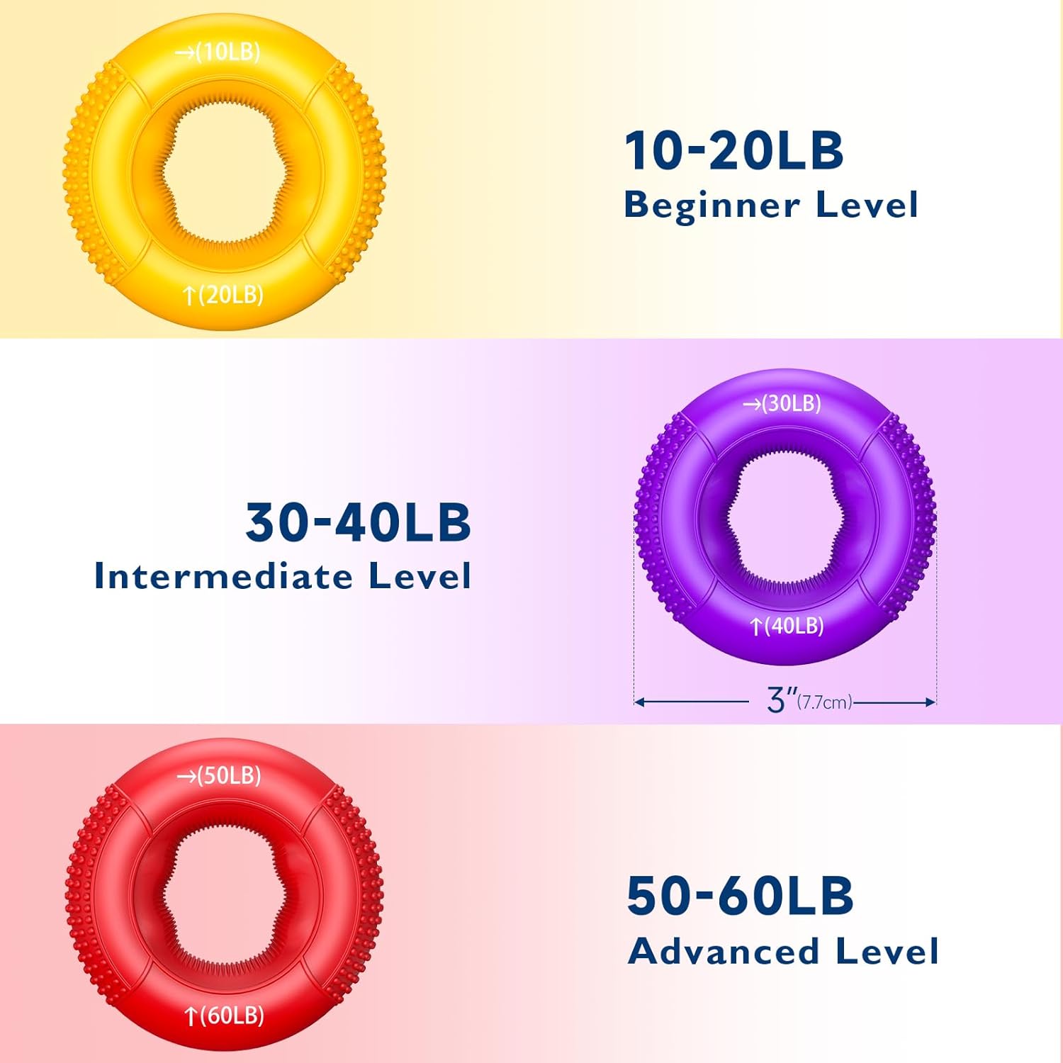 - 𝗟𝗼𝗻𝗴-𝗹𝗮𝘀𝘁𝗶𝗻𝗴 & 𝗙𝗹𝗲𝘅𝗶𝗯𝗹𝗲 𝗚𝗿𝗶𝗽 𝗥𝗶𝗻𝗴𝘀: Advance your hand strength with our progressive hand gripper rings, offering adjustable resistance from a gentle 10-20LB to a tough 50-60LB. Each ring is made from premium food-grade silicone, ensuring lasting elasticity and shape retention. The non-slip textured surface provides a secure and comfortable grip.