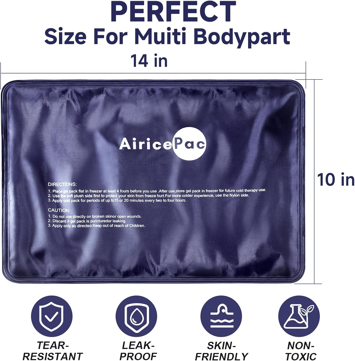 - Premium Gel Ice Pack Reusable: Cold compression ice pack are filled with professional-grade gel, and paired with superior fabrics. Ideal for your loved ones & friends: AiricePac Reusable ice pack provides 100% satisfaction service to customers. You will get 30 Days free of return and satisfying customer service.