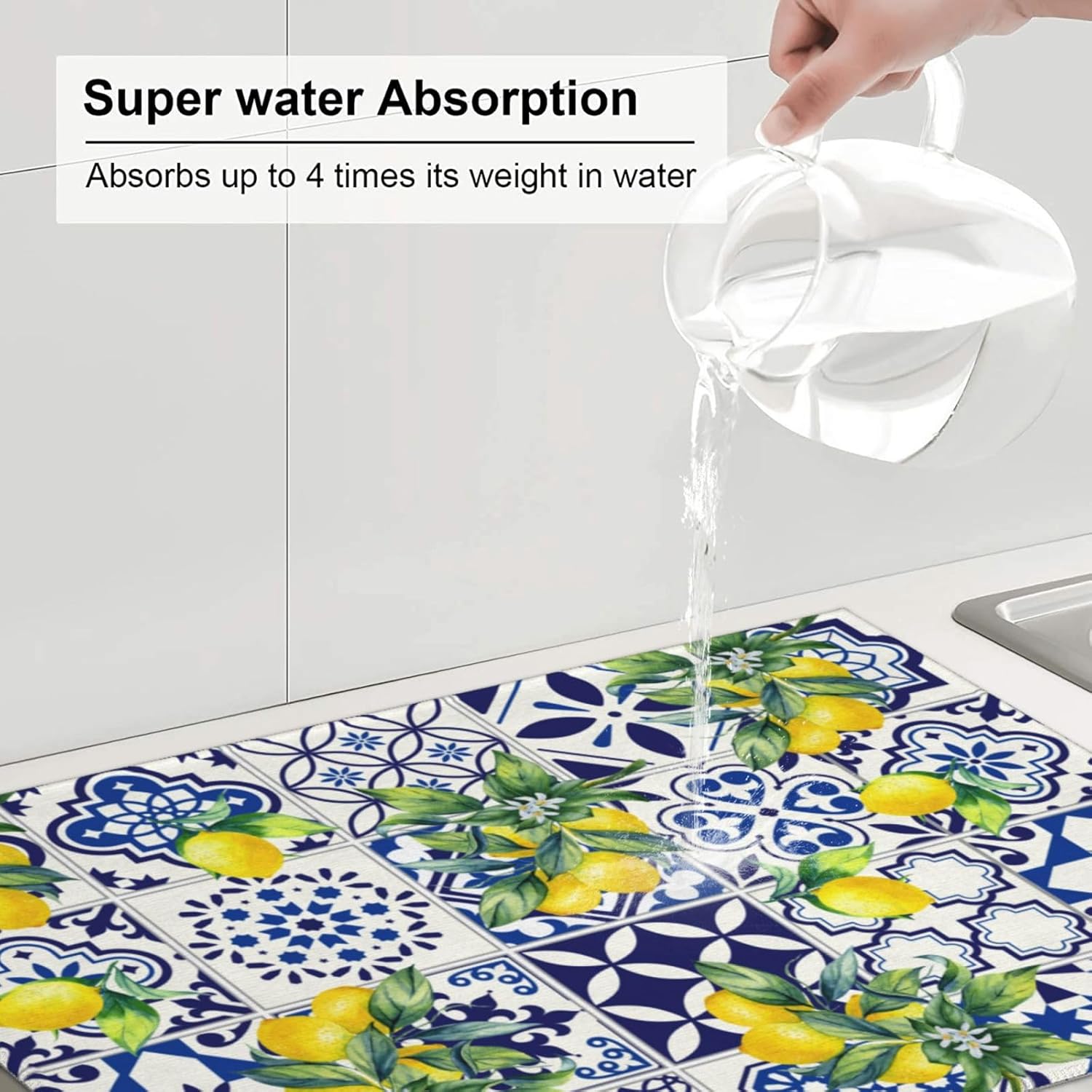 Lemon Mexican Tilt Dish Drying Mat For Kitchen Counter Absorbent Large Kitchen Fast Dry Pad Reusable Washable Protector Rack Large Mat 18 X 24