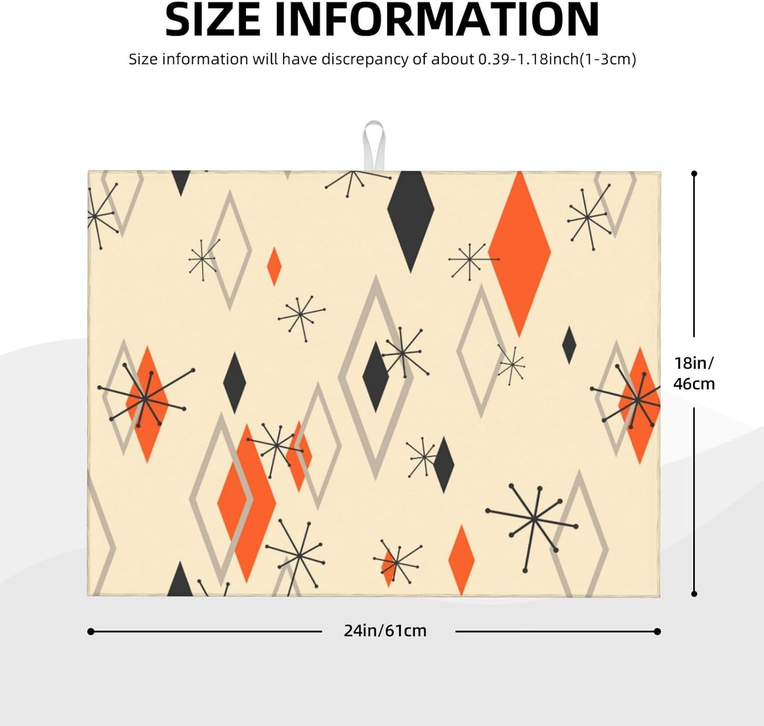 - Size: 18x24 Inches/45.7x60.9cm. The Design Of Two Sides Is Different, One Side Can Absorb The Moisture, And The Other Side Is Gray Anti-Slip Edge. Available In Various Rich Color Options To Complement Kitchen Decor.