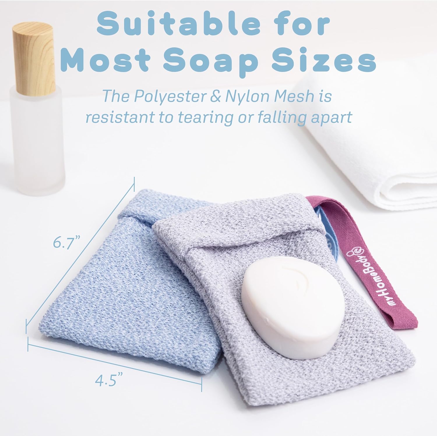 - Fit Most Soap Sizes : myHomeBody Soap Saver for Bar Soap is made from Polyester and Nylon. The Exfoliating Body Scrubber is spacious to hold most soaps.