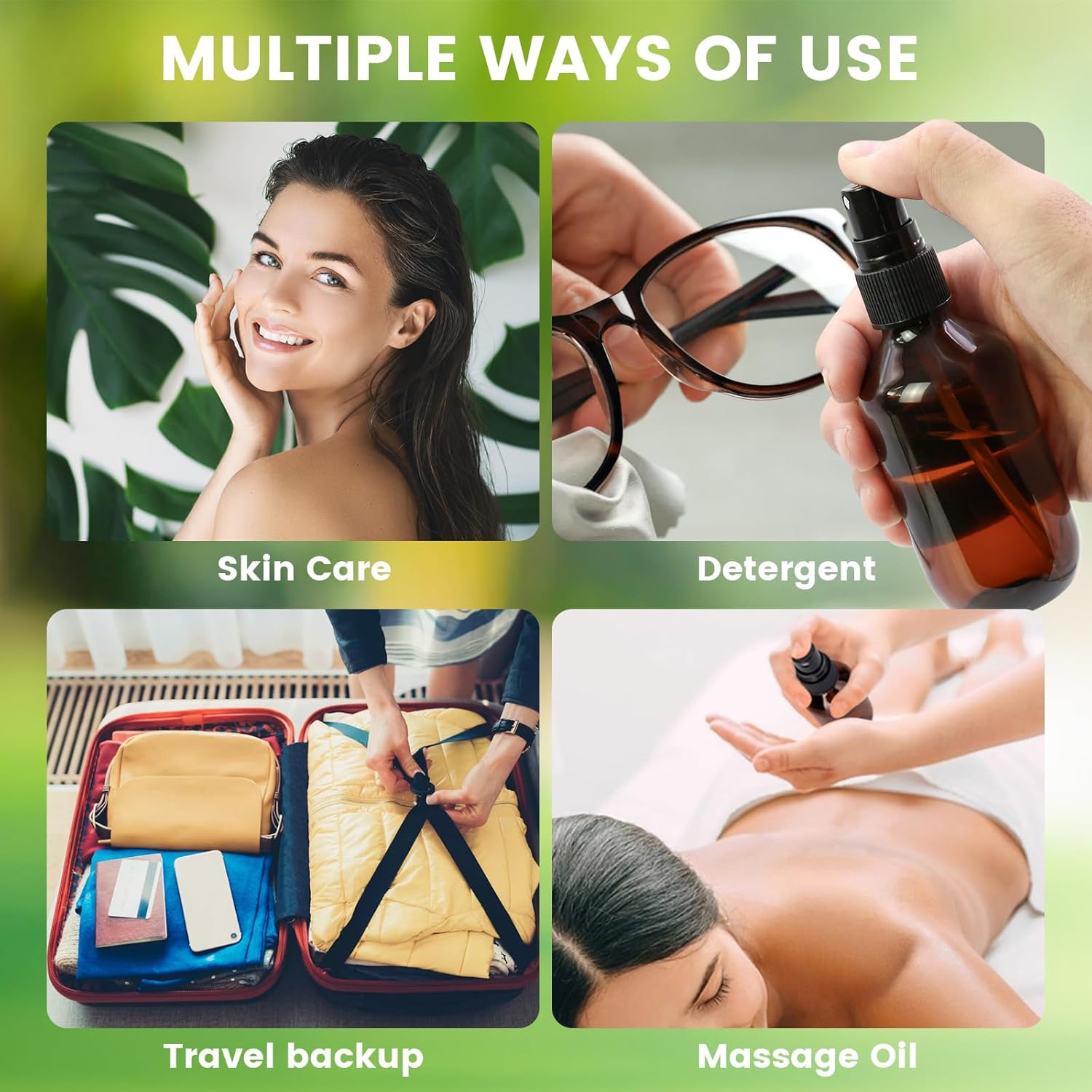 - Multipurpose Usag-Our small spray bottles 3 oz are perfect for storage of essential oils, perfume, air fresheners, cleaning sprays, and aromatherapy for work, home, and travel. The amber plastic spray bottle gives a professional look to your product and saves you money by being refillable.