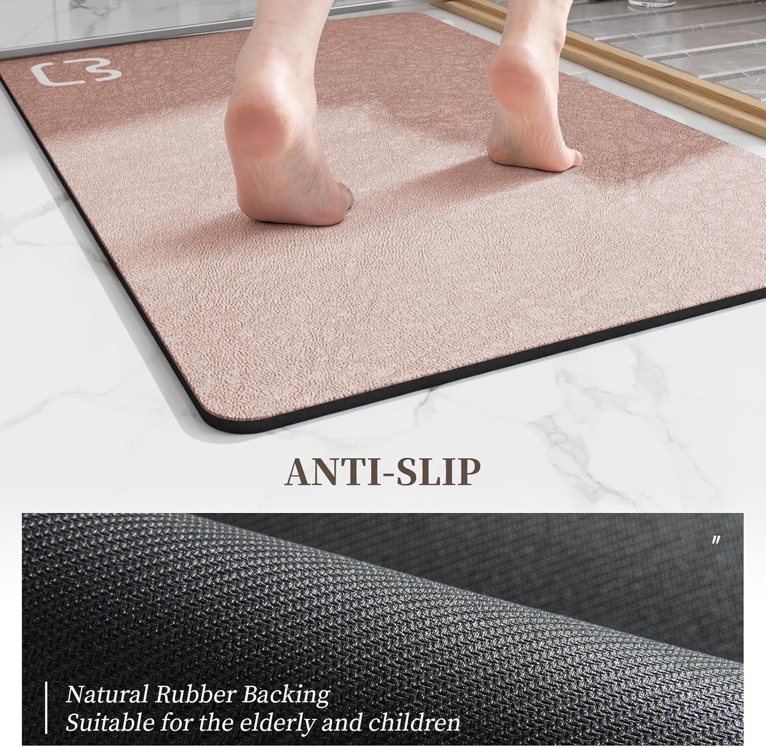 - 【Non-Slip Backing & Low Profile No Risk of Tripping】The 100% high-quality anti-slip rubber bottom of our blush bink bath mats for bathroom provides excellent grip on wet and smooth floors. This minimizes the risk of slipping, making it safe for children and the elderly to use. You can step out of the shower or bathtub with confidence.