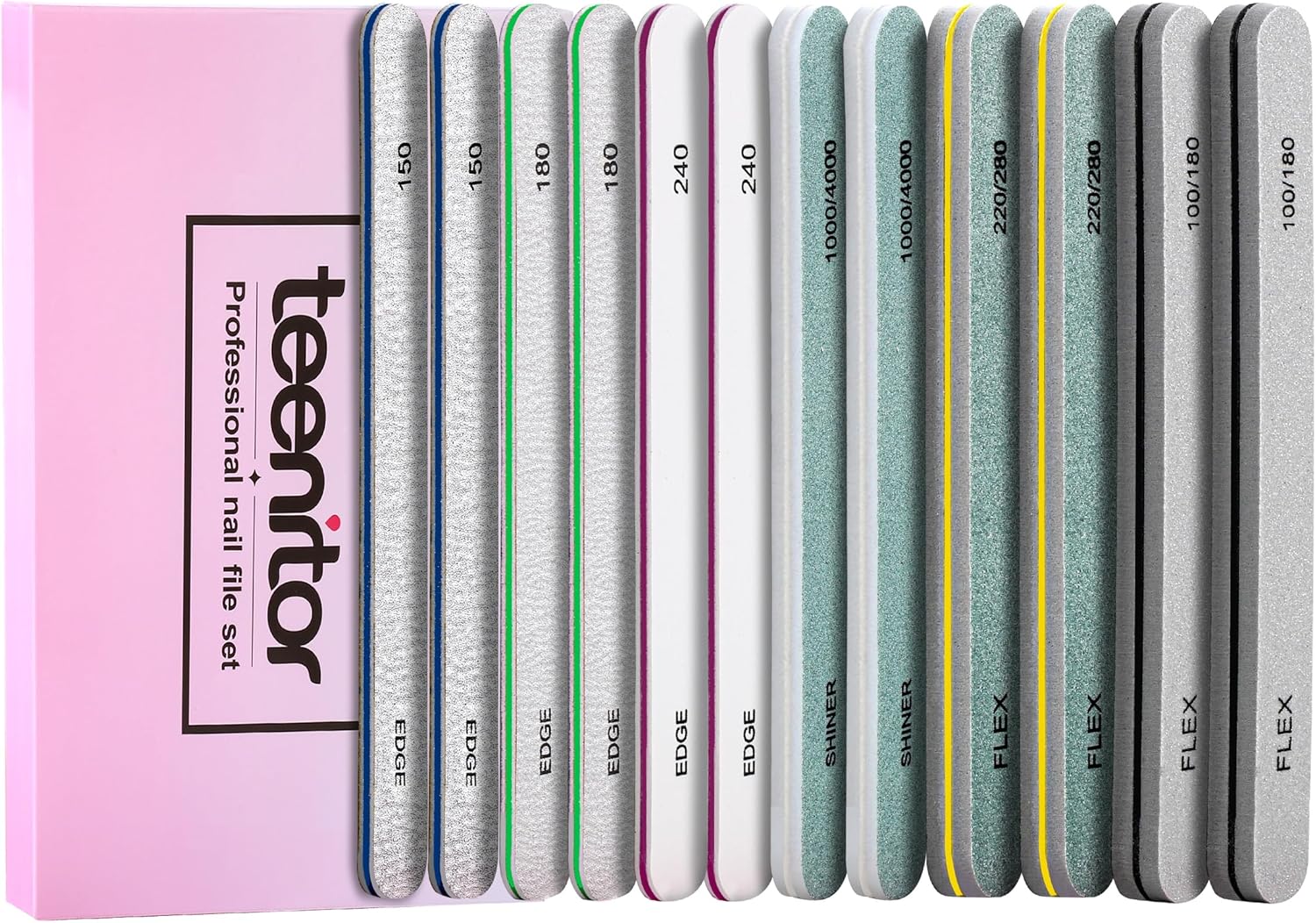 - Teenitor Nail Files and Buffers Set contains the most complete nail trimmer and shaper tool for both finger and toe, suitable for gel nail and false nails, you will get 12pcs fingernail files for women or men, each 6pcs is a complete set which means you can get 2 sets of nail file at the same time, super valued nail buffer and shine kit
