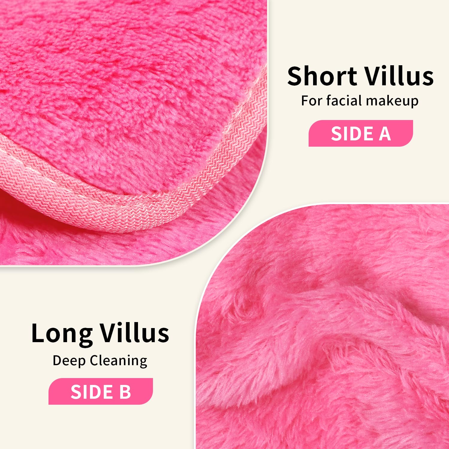 - 【Multi-purpose】The makeup remover pad towels is designed with both sides to exfoliate and remove makeup easily in two steps. Short microfibers remove makeup efficiently and easily, while long microfibers deeply cleanse and exfoliate, leaving your face refreshed after every use. The edge of the makeup remover towel is reinforced, which is not only beautiful, but also provides additional durability, ensuring that it is not easy to wear and maintain the best condition during long-term use.