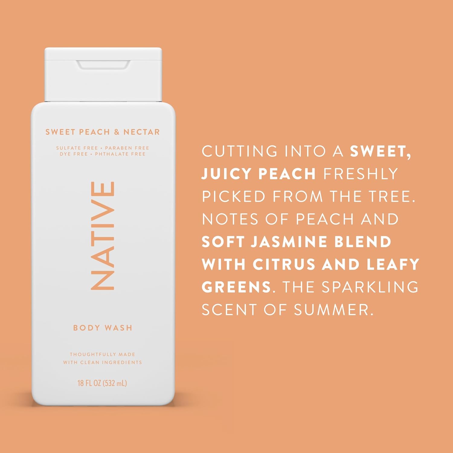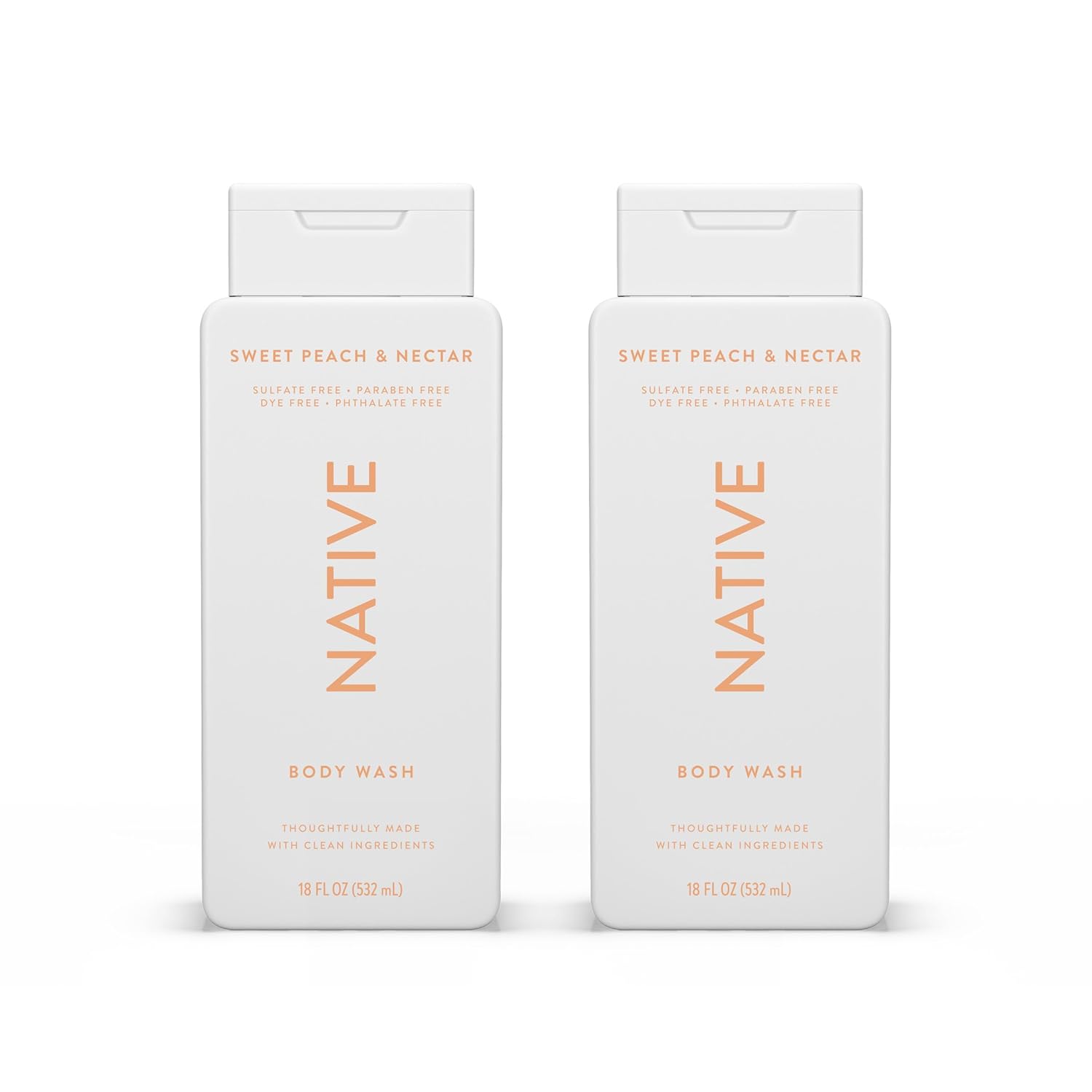 Native Body Wash Contains Naturally Derived Ingredients | For Women & Men, Sulfate, Paraben, & Dye Free Leaving Skin Soft and Hydrating | Sweet Peach & Nectar 18 oz - 2 Pk
