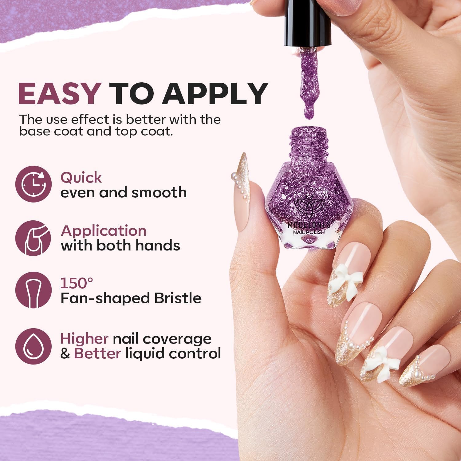 modelones Nail Polish Set 12 Colors Pearl White Nude Glitter Blue Pink Purple Quick Dry Mini Nail Lacquer Kit, Christmas Holiday Manicure Gifts for Women Girl Shimmer Home DIY Finger Toe Nail Art