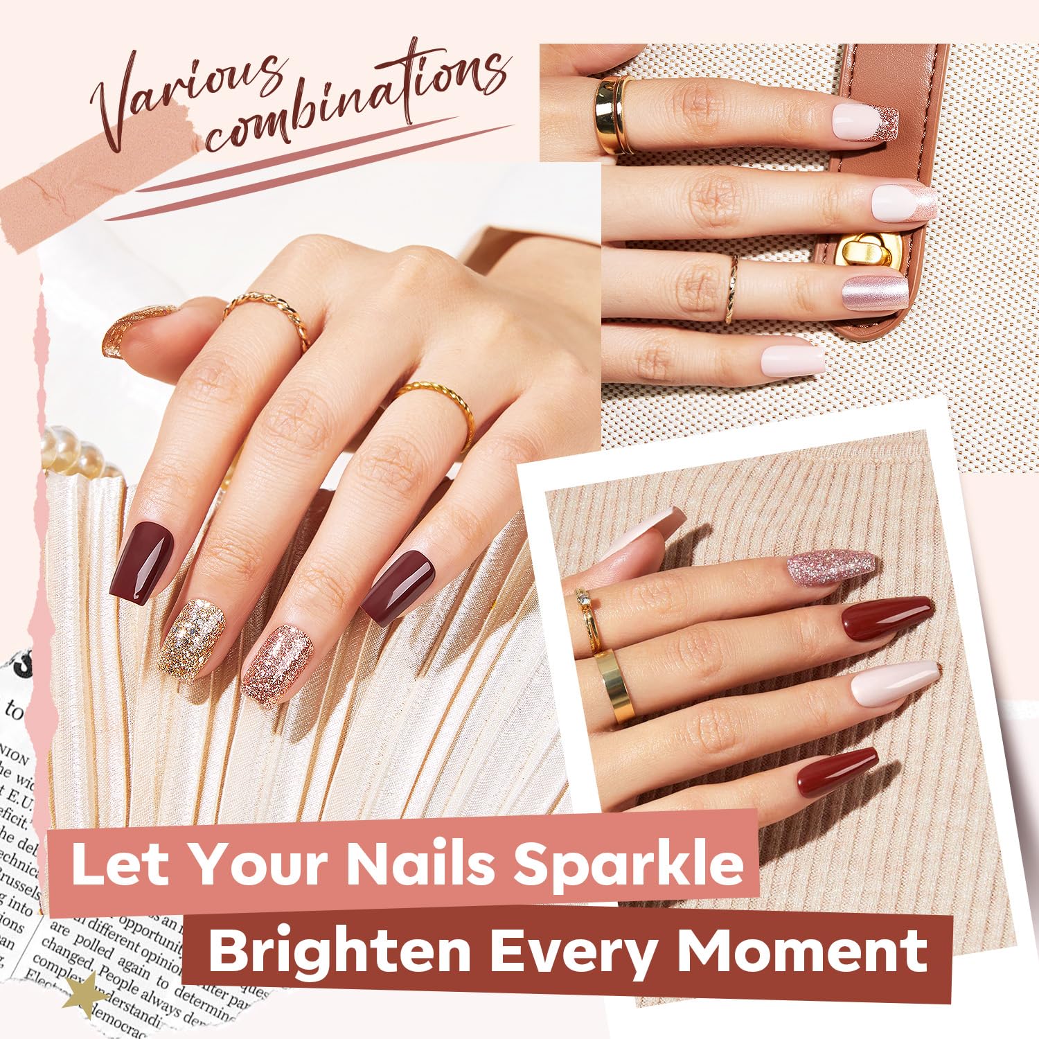 - On-Trend Color Variety: Discover our 12-color nail polish set, featuring a range of natural nude nail polish and gold glitter nail polish shades. Perfect for everyday wear and special occasions, this multi-color kit has the seasonal colors you need to stay on trend.