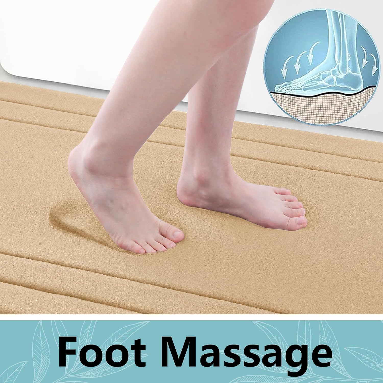 Arotive Memory Foam Bathroom Rug Mat 24x16, Ultra Soft and Absorbent Bath Mat, Machine Wash Dry, Comfortable Bath Rug Carpet for Bathroom Floor, Tub and Shower, Beige