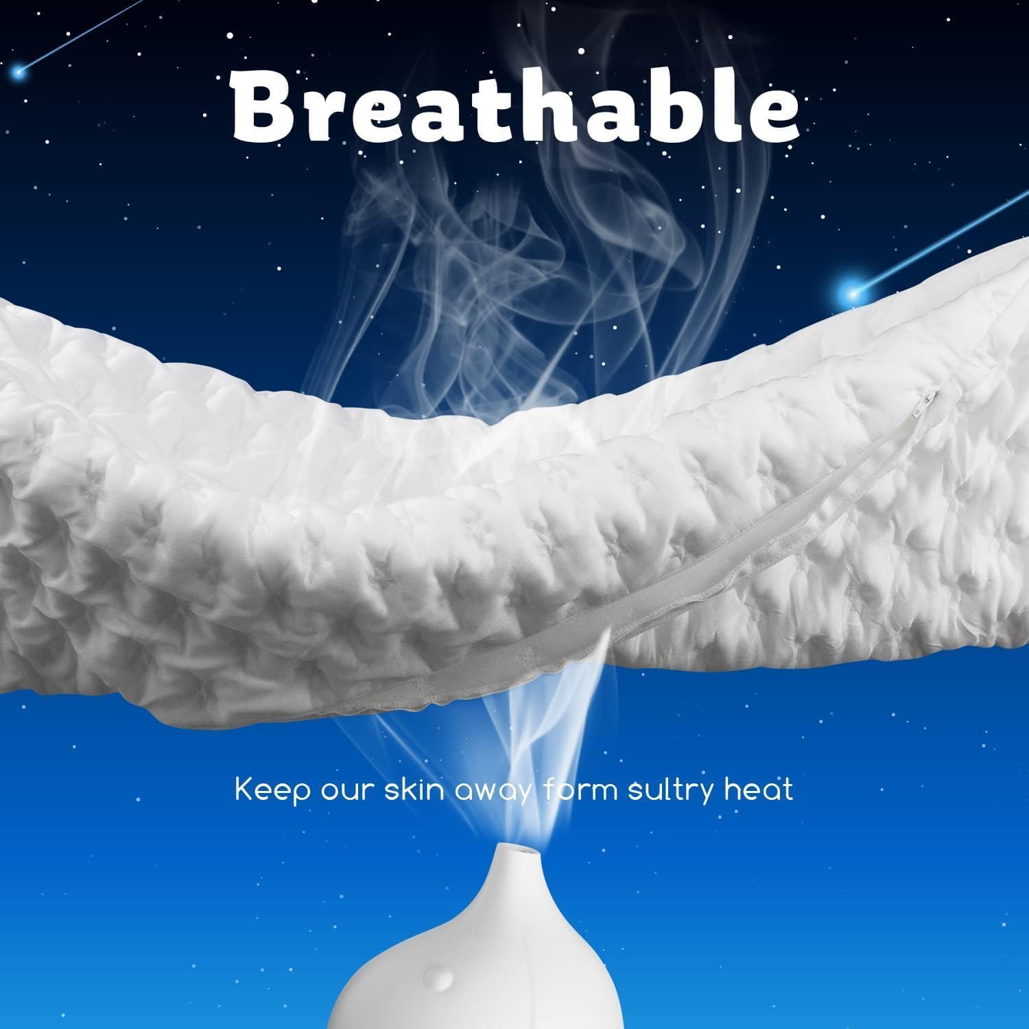 - 5-Second Temperature Reset Cooling Pillow âNo More Sweaty Nightsââ: Don't you love putting your head on a cool pillow when you go to bed? How about if you could have that great feeling over and over again during the night. Experience the Soft Cloud Comfort Ă Ice-Cool Fiber â No More Midnight Flips, Wake Up Refreshed. The âKucey Cooling Pillow increases breathability by 50%, prevents night sweats, and ensures optimal airflow for deep, restorative sleep. Upgrade your sleep with the cool pillow. Wake up zero neck stiffness and refreshed. It's time to love your sleep