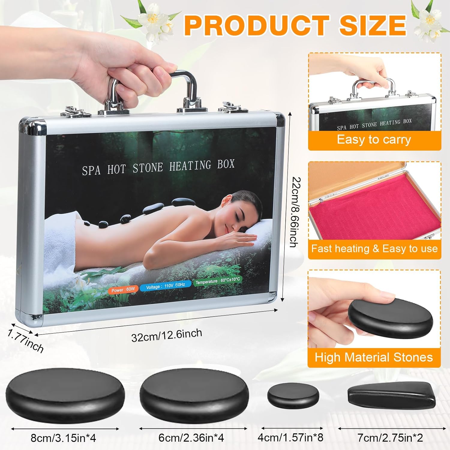 - Safe and Easy Heating: Equipped with a portable heating box. Heat stones to 120â140°F, then cool for 2 minutes before use. Ideal for home spa routines, personal wellness, or relaxation before sleep. Boil before first use to sanitize