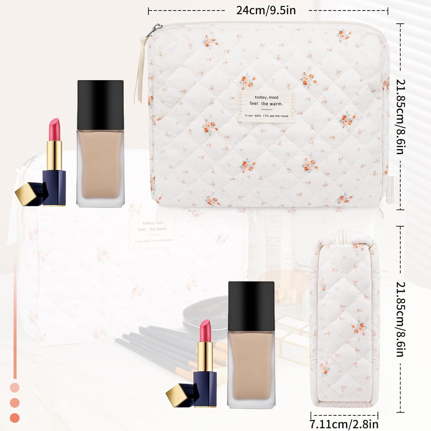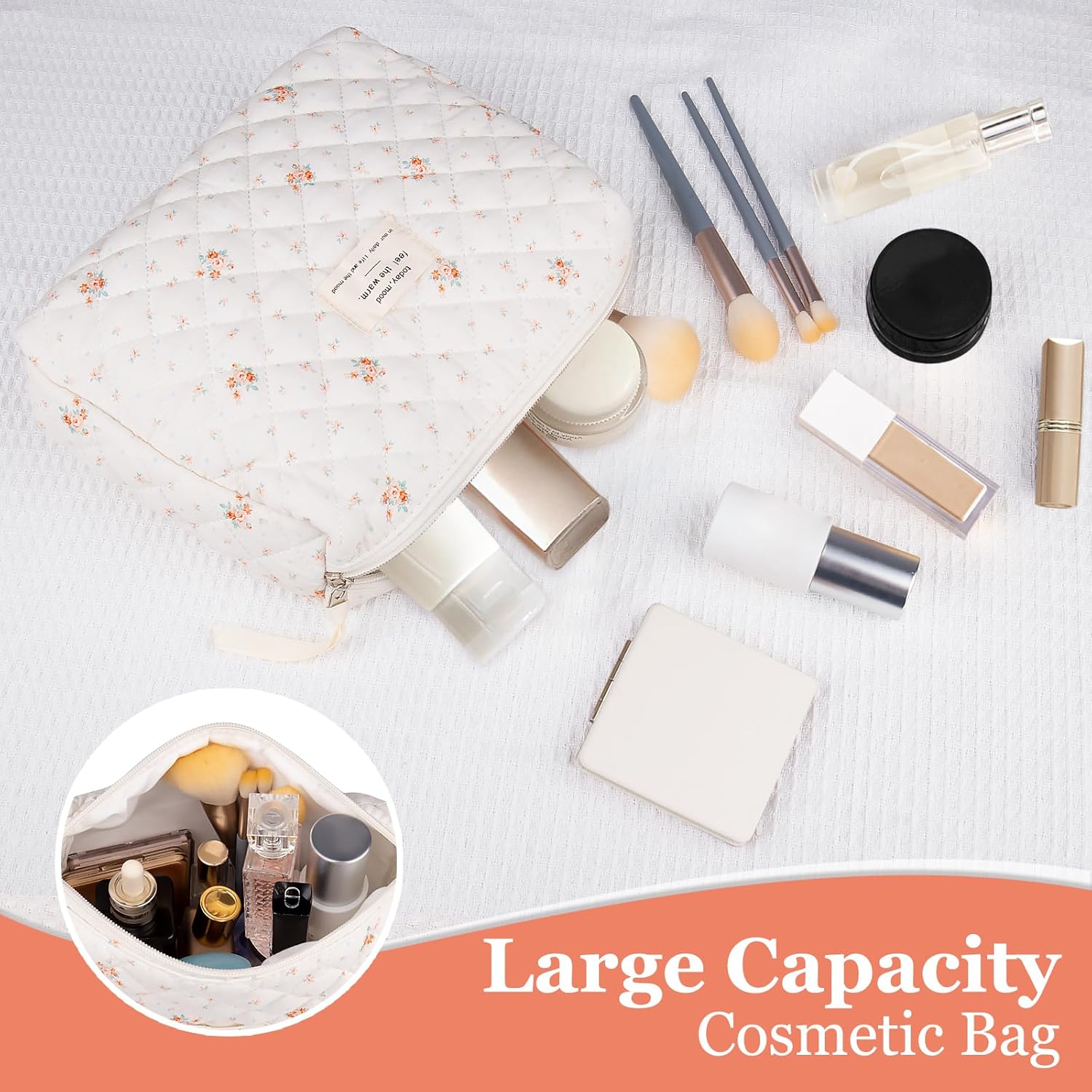 - ✅Large Capacity: Floral cotton makeup bags size(21.8*21.8*7.11cm/8.6*8.6*2.8in) and is easy to carry. Is the perfect choice and ideal companion for any traveler. The large capacity cosmetics bag can lipstick, cosmetic accessories, lipstick, lip gloss, brushes, skincare products, toiletries, 3c items, stationery kit, watercolor pens pencils, and painting brushes, and can be easily folded up and placed in a handbag or suitcase when not in use.